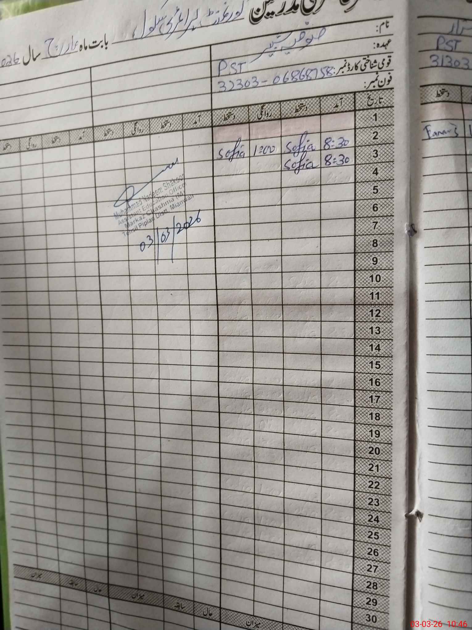 | Name: NA**** NA**** Designation: (School Headmaster's/Headmistress's) PST Phone/Cell Number: 03**** |