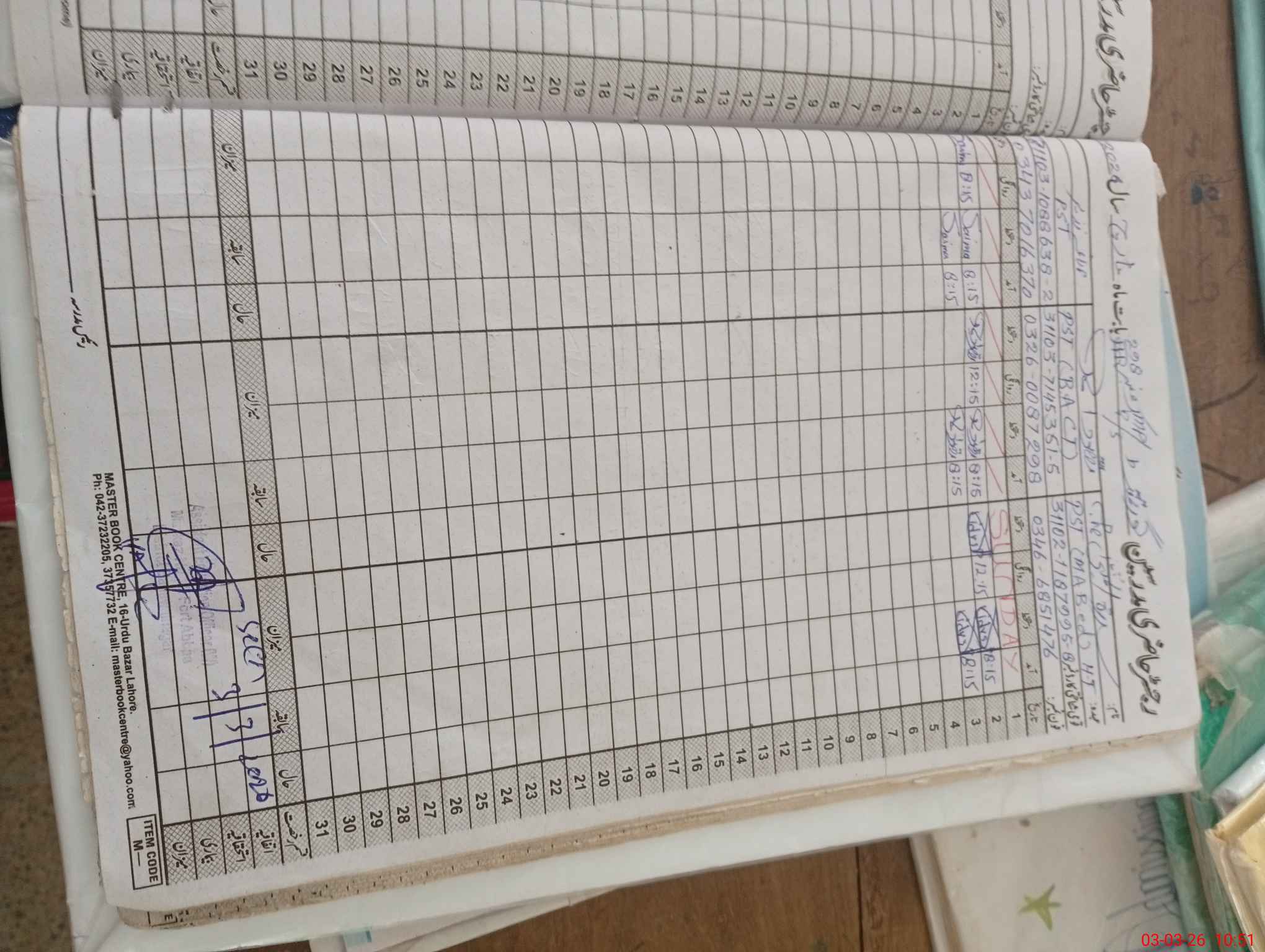 | CNIC | Full Name | Designation | R/C | Absence During Last Calender Month |