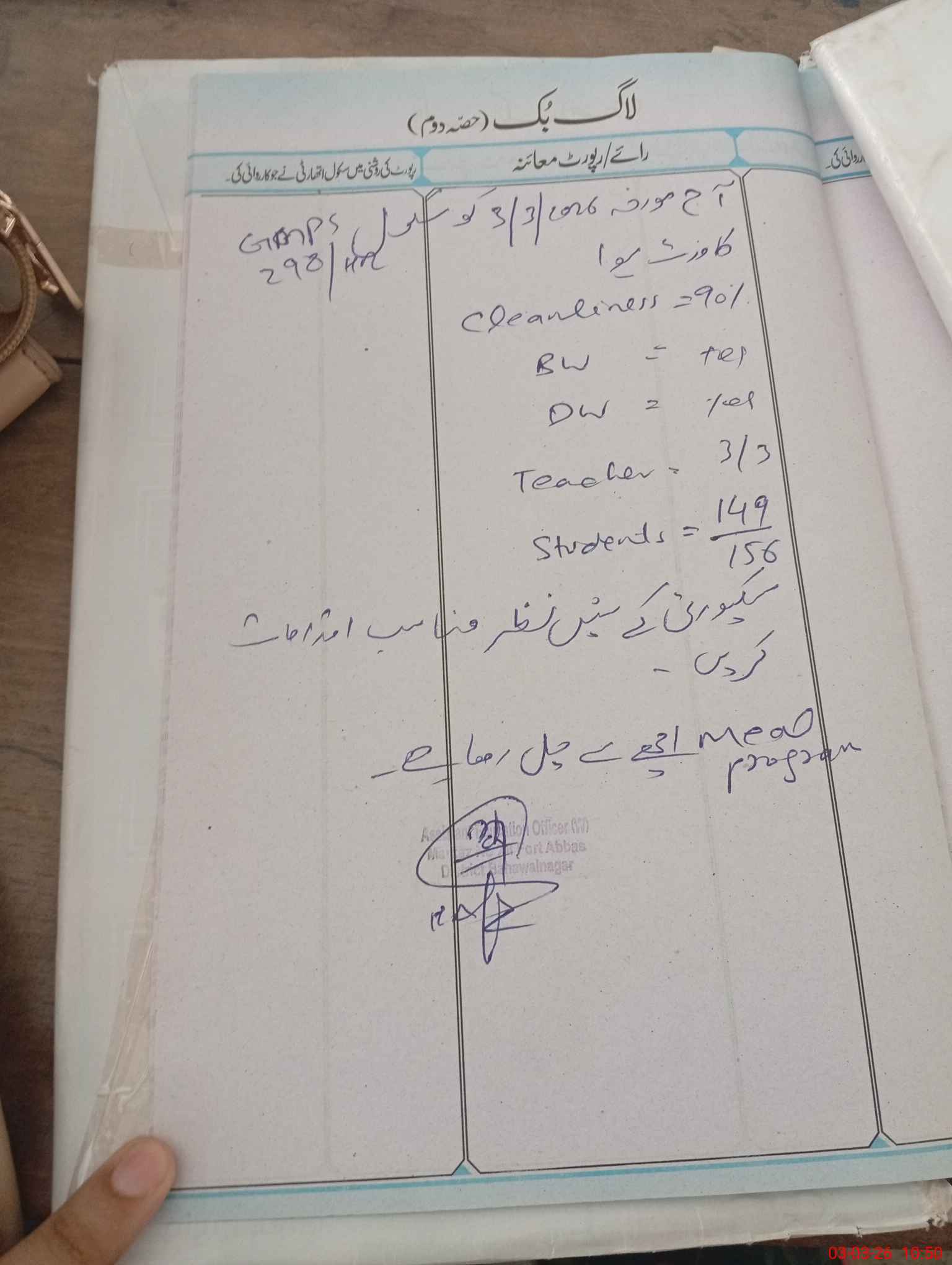 | Certified that this School was Inspected by the Undersigned MEA/DMO Today and the Information Stated Above is as Per Record. | |||||