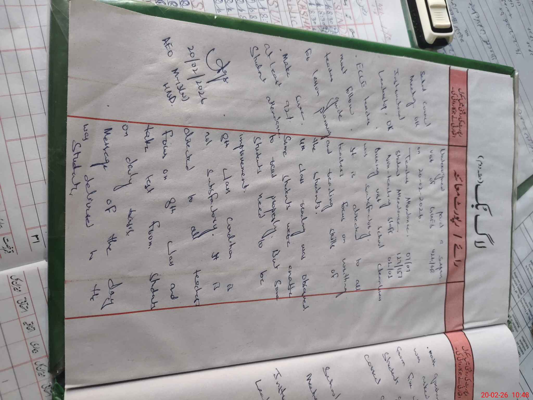 | Attendance Register | Head Teacher | MEA with School | Visit Proof |