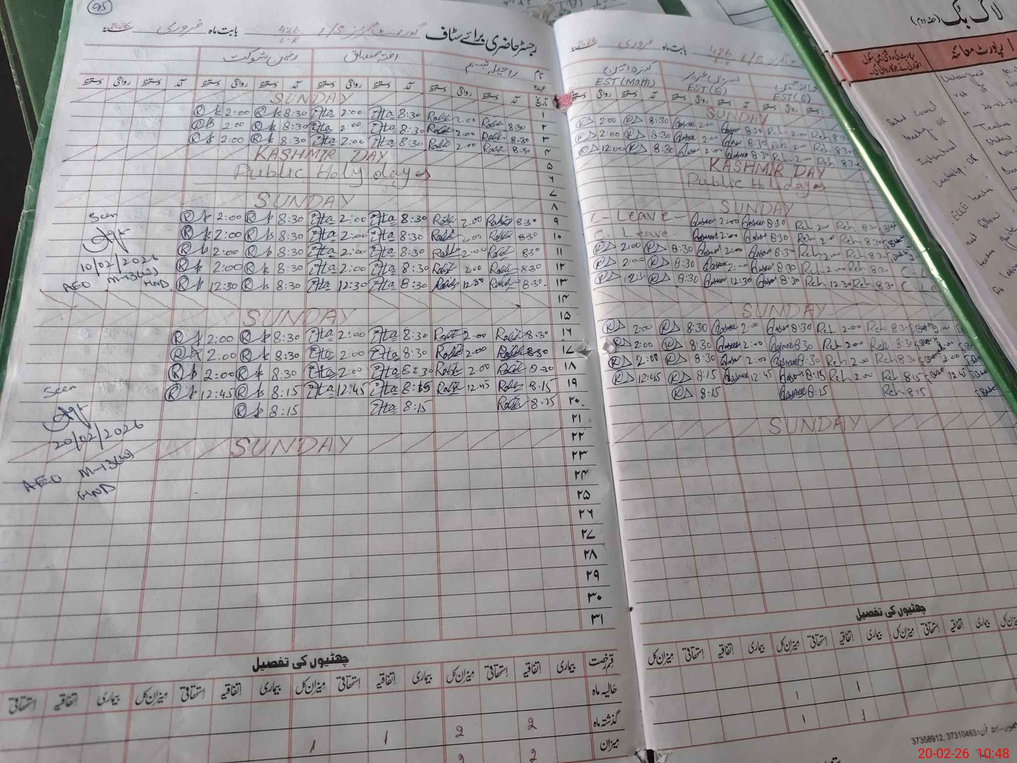 | Leave | Duty | Absent | Maternity | Medical | Ex- Pak |