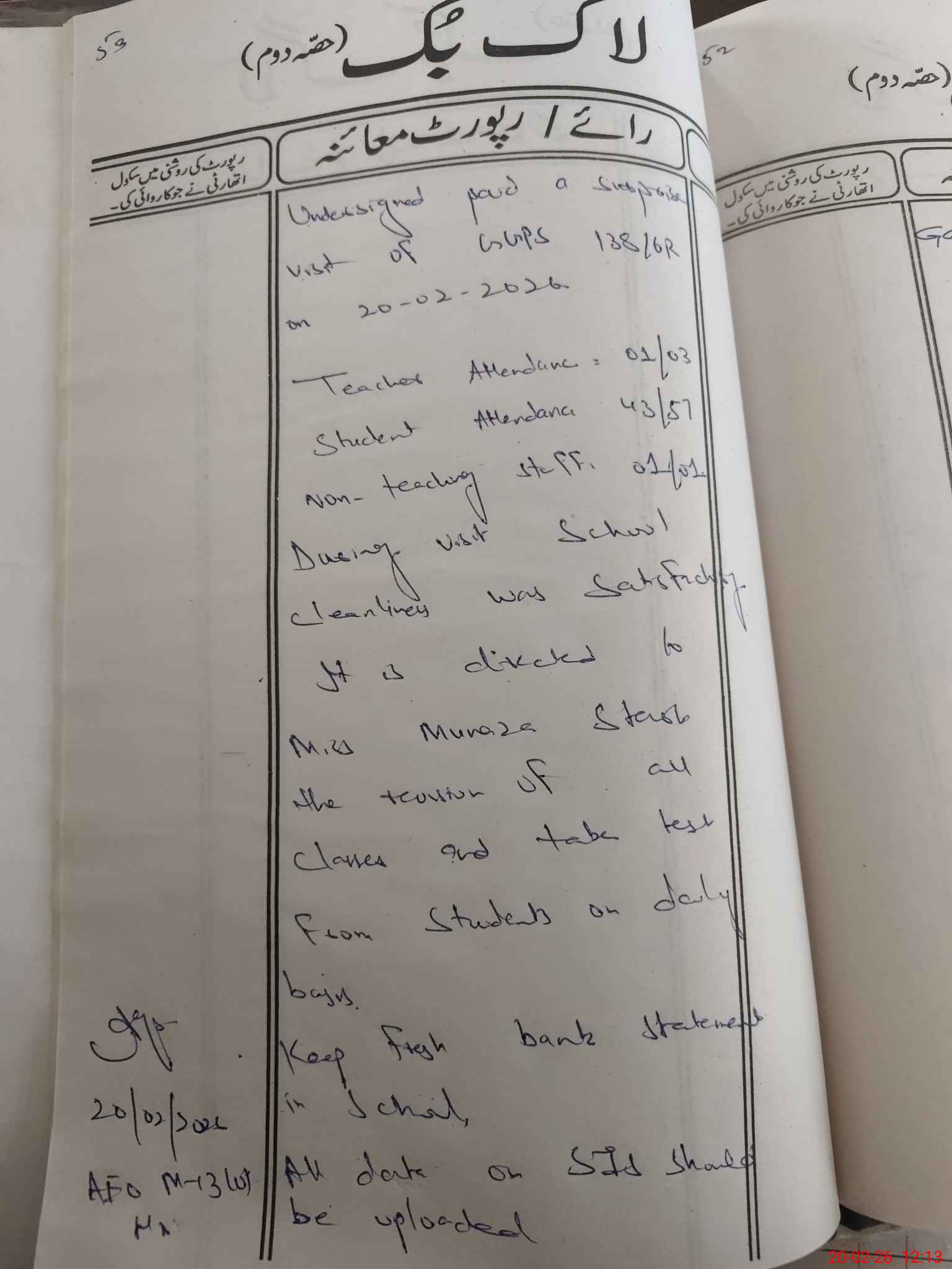 | Attendance Register | Head Teacher | MEA with School | Visit Proof |