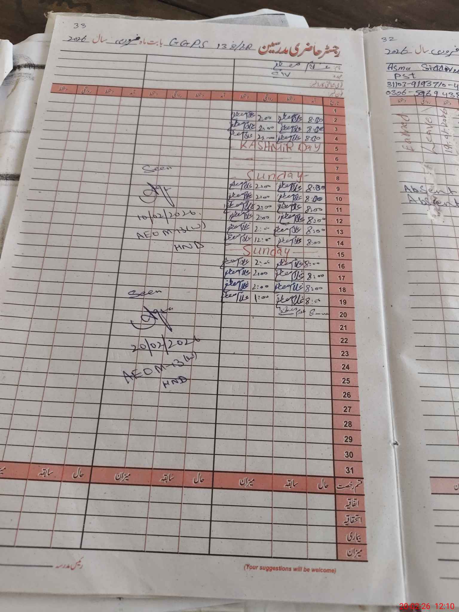 | CNIC | Full Name | Designation | R/C | Absence During Last Calender Month |