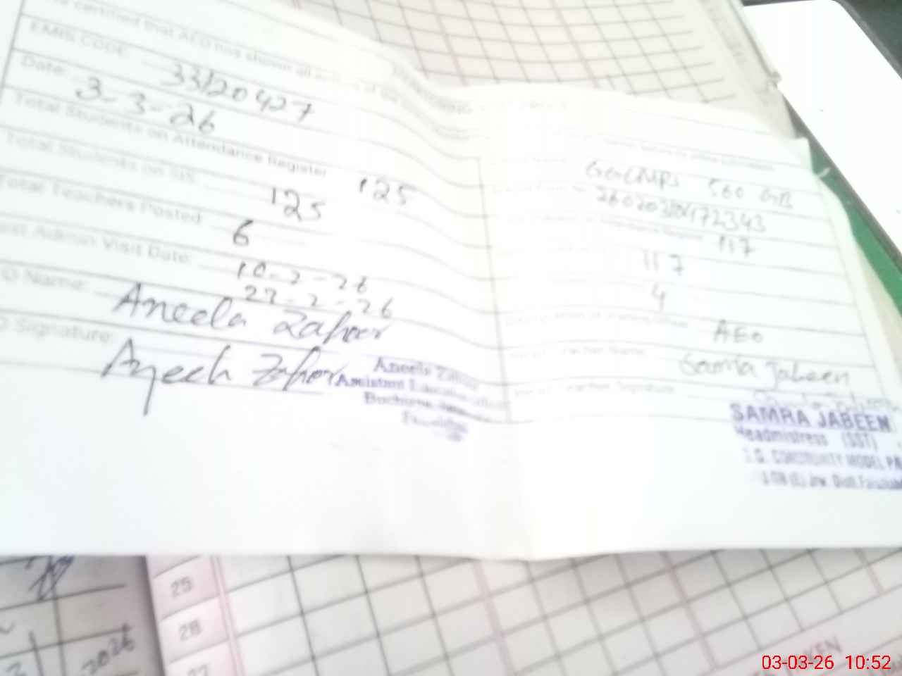| EMIS Code: 33120427 | Name of School: GGCMS CHAK 560 GB I WEST LUNDIANWALA | |||
