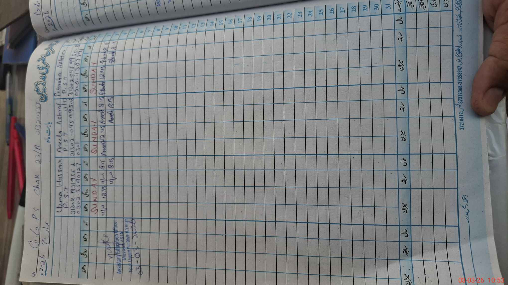 | Name: An**** As**** Designation: (School Headmaster's/Headmistress's) PST Phone/Cell Number: 03**** |