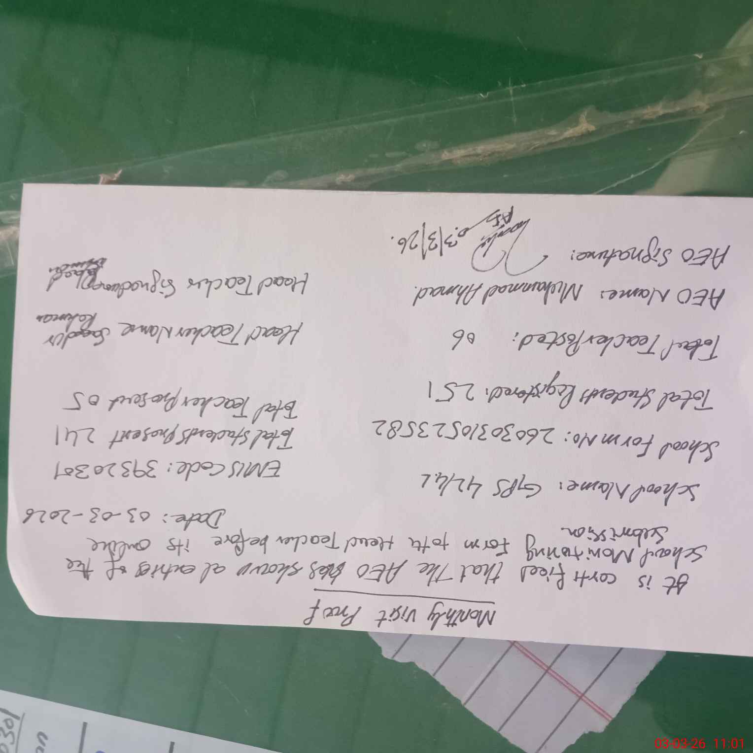 | Monitoring Date: 03-03-2026 | Start Time: 03-03-2026 10:41 AM | End Time: 03-03-2026 11:01 AM | Name of MEA: Mu**** Ah**** | |