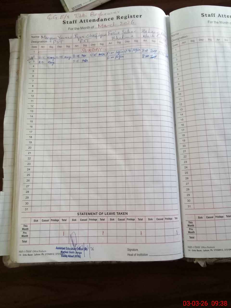 | Name: UZ**** IS**** Designation: (School Headmaster's/Headmistress's) S.S.T.(general Phone/Cell Number: 03**** |