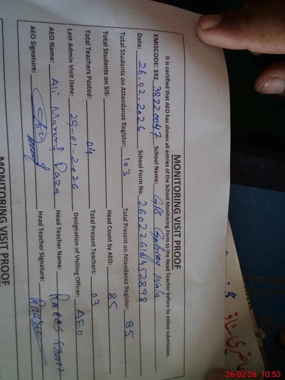 | EMIS Code: 38220047 | Name of School: GPS GOHRAY WALA | |||