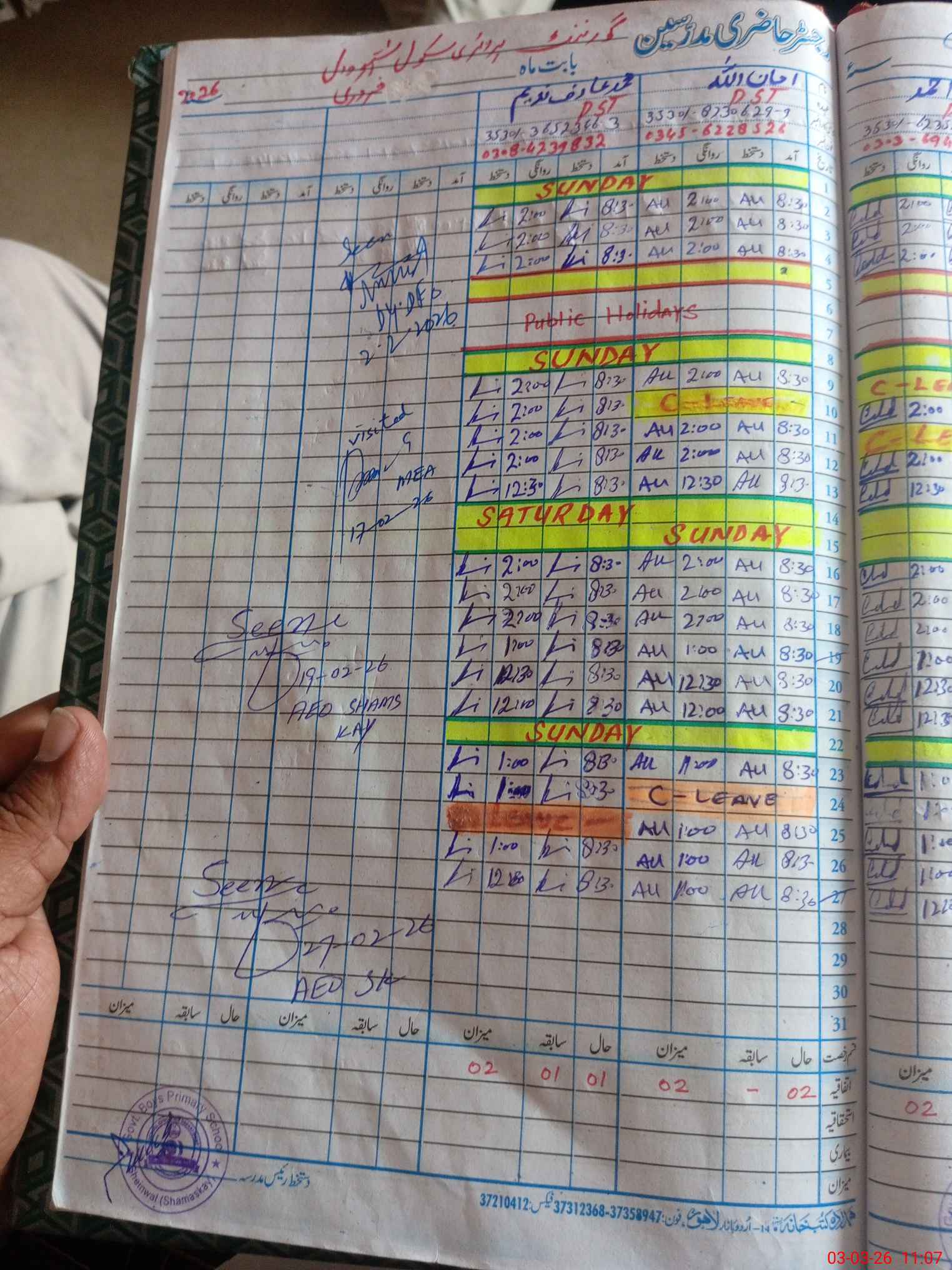 | Name: AB**** WA**** Designation: (School Headmaster's/Headmistress's) PST Phone/Cell Number: 03**** |