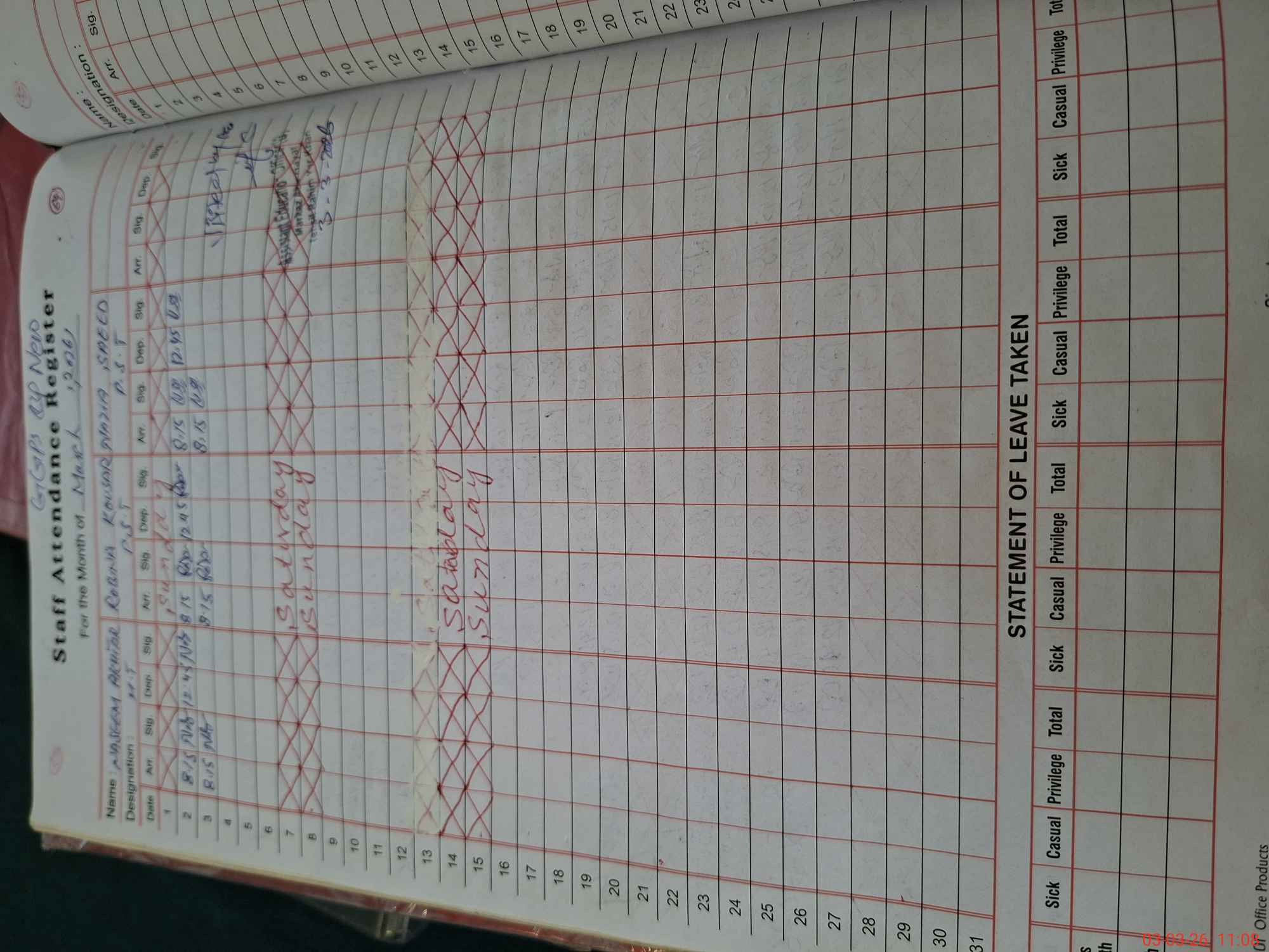 | Leave | Duty | Absent | Maternity | Medical | Ex- Pak |