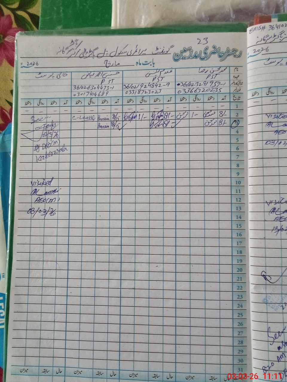 | Name: NA**** HA**** Designation: (School Headmaster's/Headmistress's) PST Phone/Cell Number: 03**** |