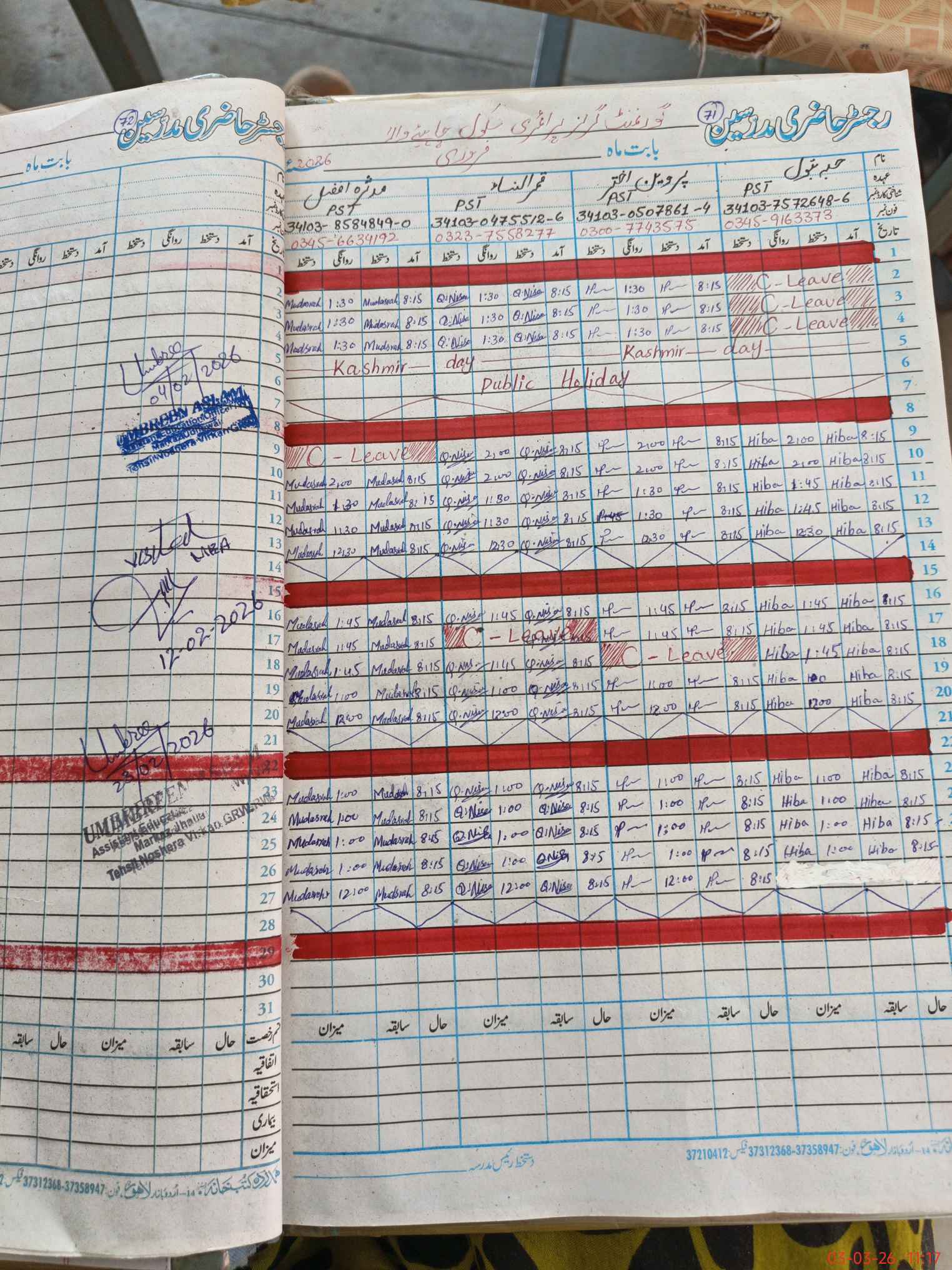 | Name: Hi**** Ba**** Designation: (School Headmaster's/Headmistress's) PST Phone/Cell Number: 03**** |