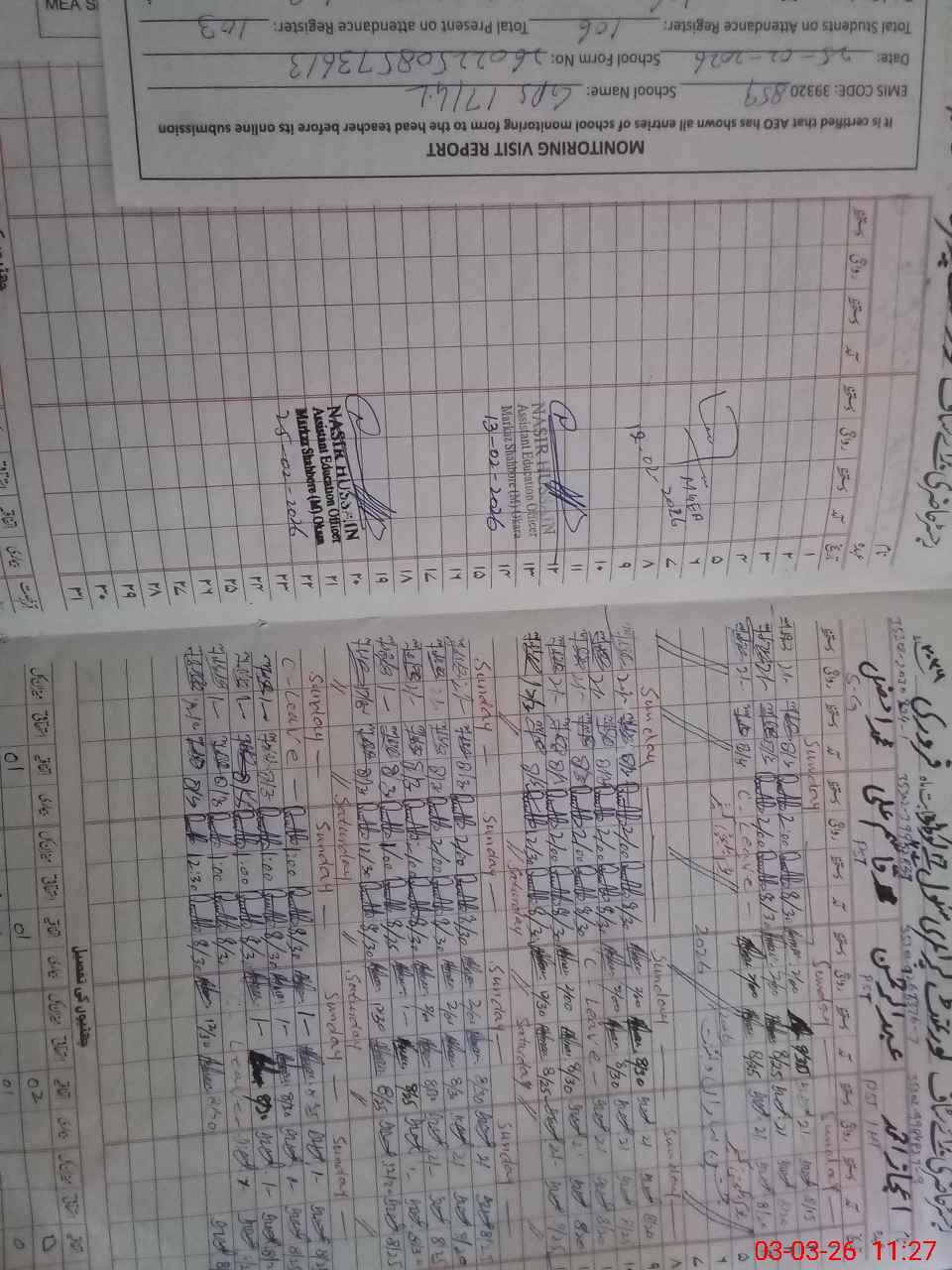| Attendance Register | Head Teacher | MEA with School | Visit Proof |
