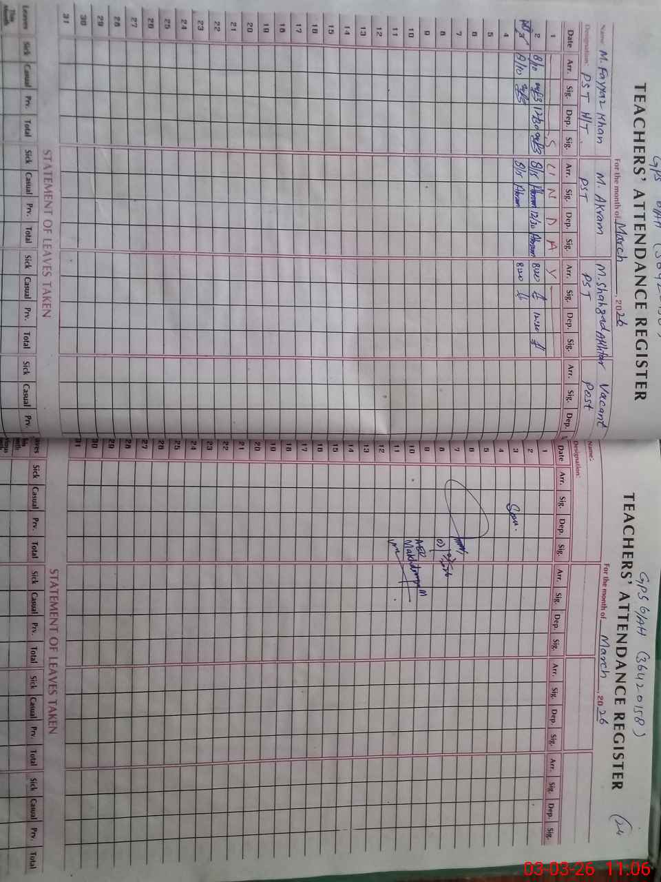 | Name: MFa**** Kh**** Designation: (School Headmaster's/Headmistress's) PST Phone/Cell Number: 03**** |