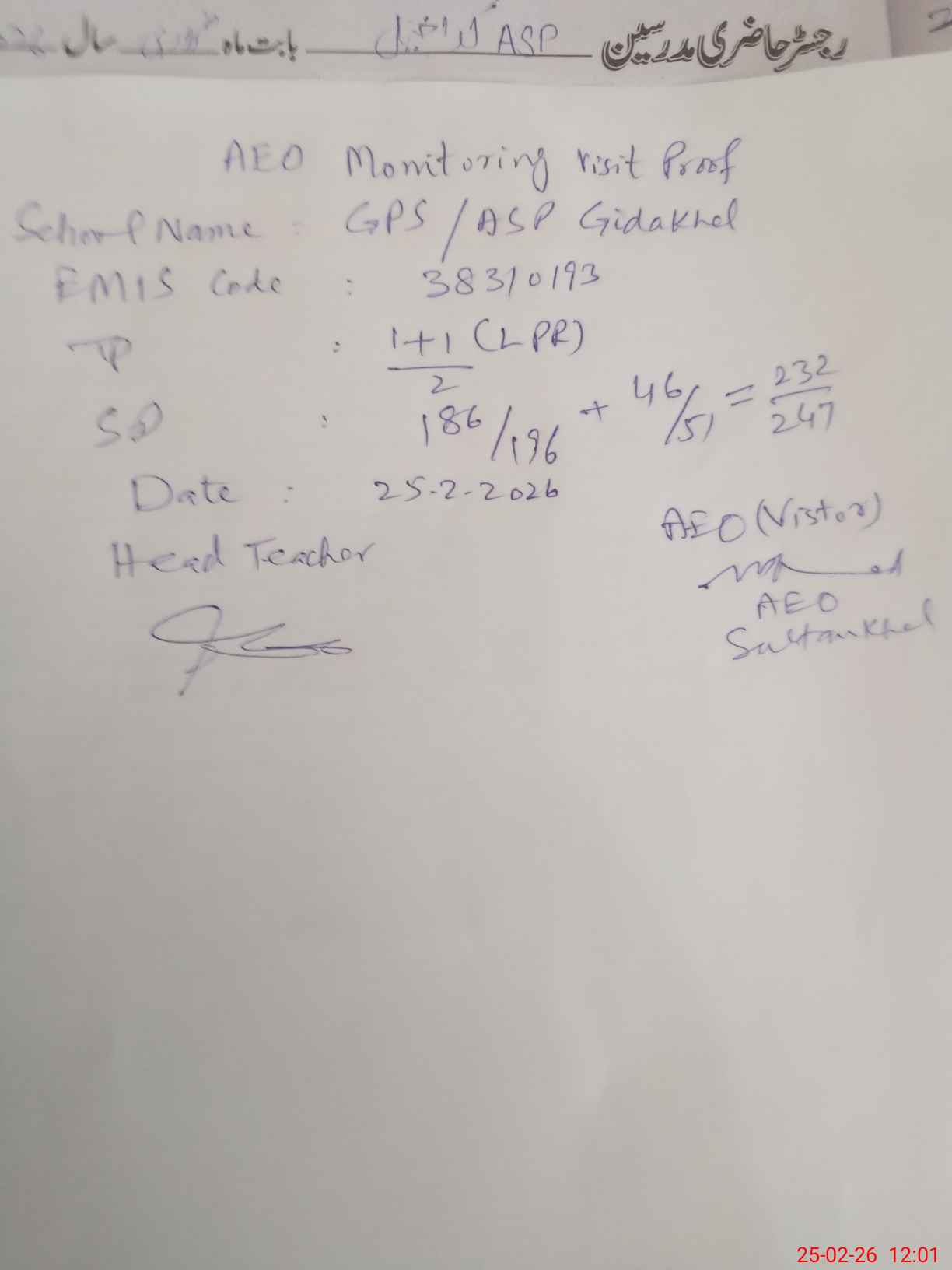 | EMIS Code: 38310193 | Name of School: GPS GIDDA KHEL | |||
