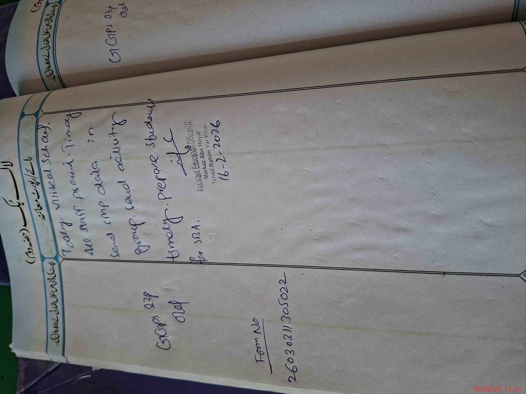 | Name: Fa**** Me**** Designation: (School Headmaster's/Headmistress's) P S T Phone/Cell Number: 03**** |