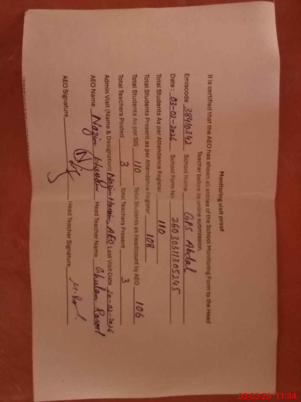 | EMIS Code: 38410342 | Name of School: GPS ABDAL | |||