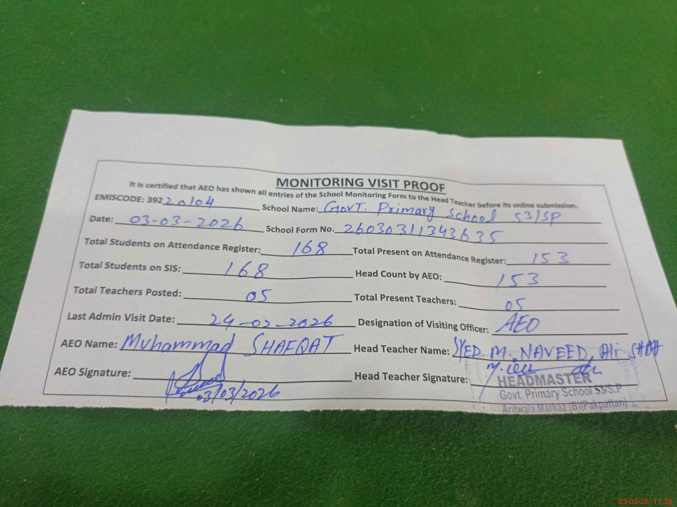 | Name: SY**** MU**** NA**** AL**** SH**** Designation: (School Headmaster's/Headmistress's) PST Phone/Cell Number: 03**** |