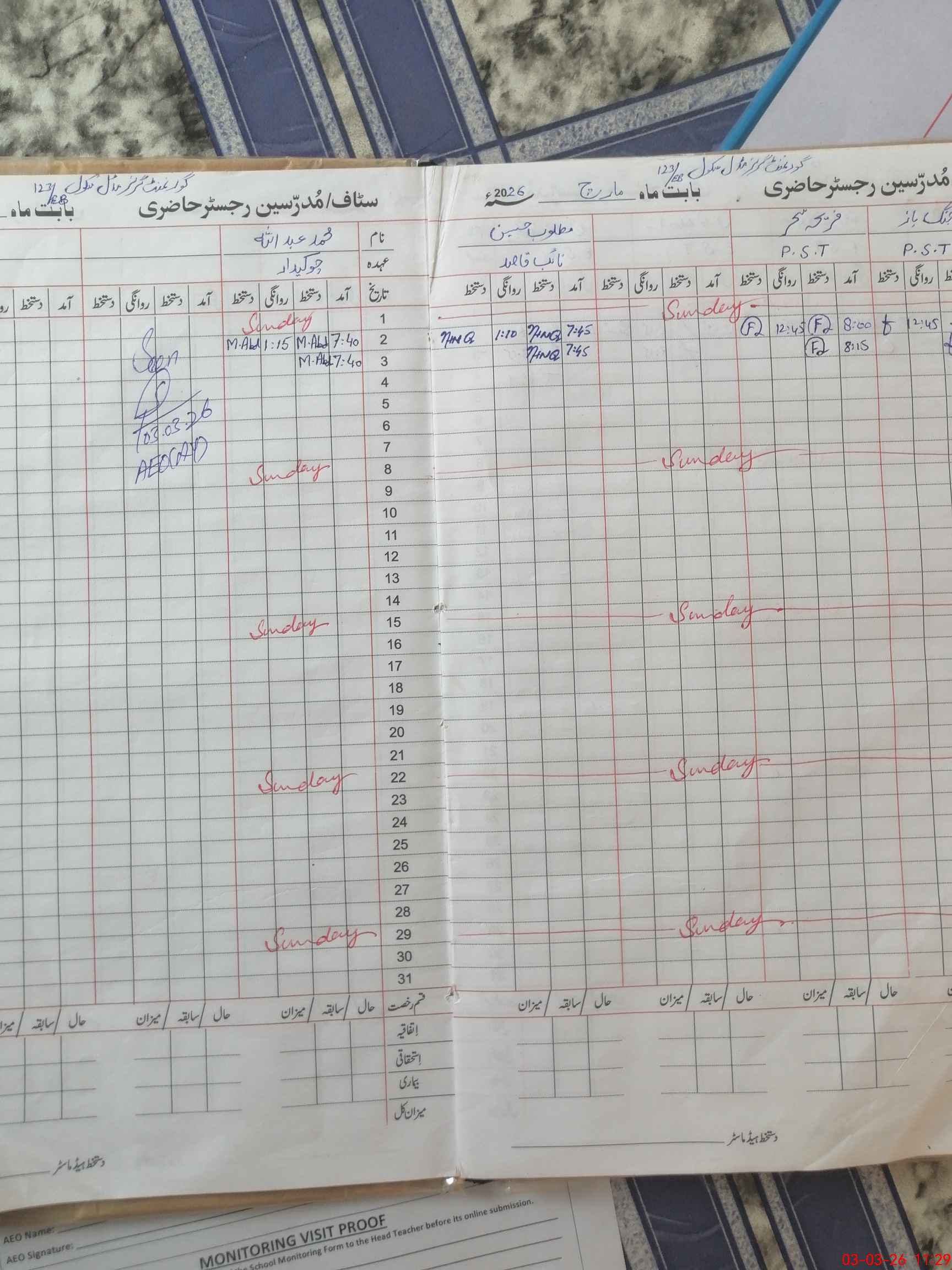 | Monitoring Date: 03-03-2026 | Start Time: 03-03-2026 11:15 AM | End Time: 03-03-2026 11:37 AM | Name of MEA: Ab**** Ha**** As**** | |
