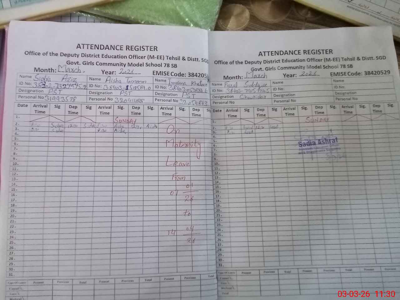 | 35**** | Sa**** Gh**** | PST Science/Maths | Regular | 0 | 0 | 0 | 0 | 0 | 0 | 0 | 0 | 0 | Maternity |