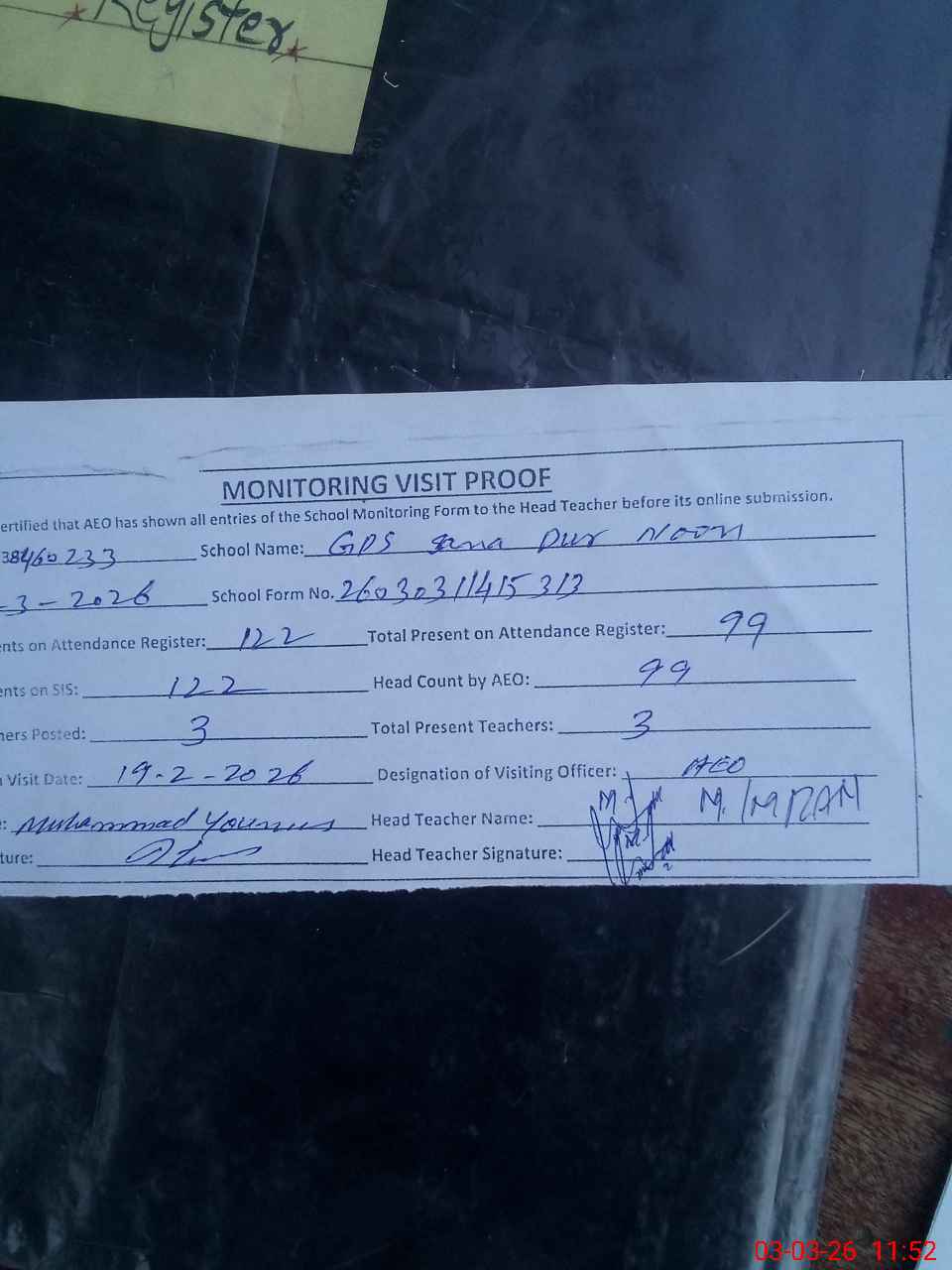 | EMIS Code: 38460233 | Name of School: GPS SANA PUR NOON | |||
