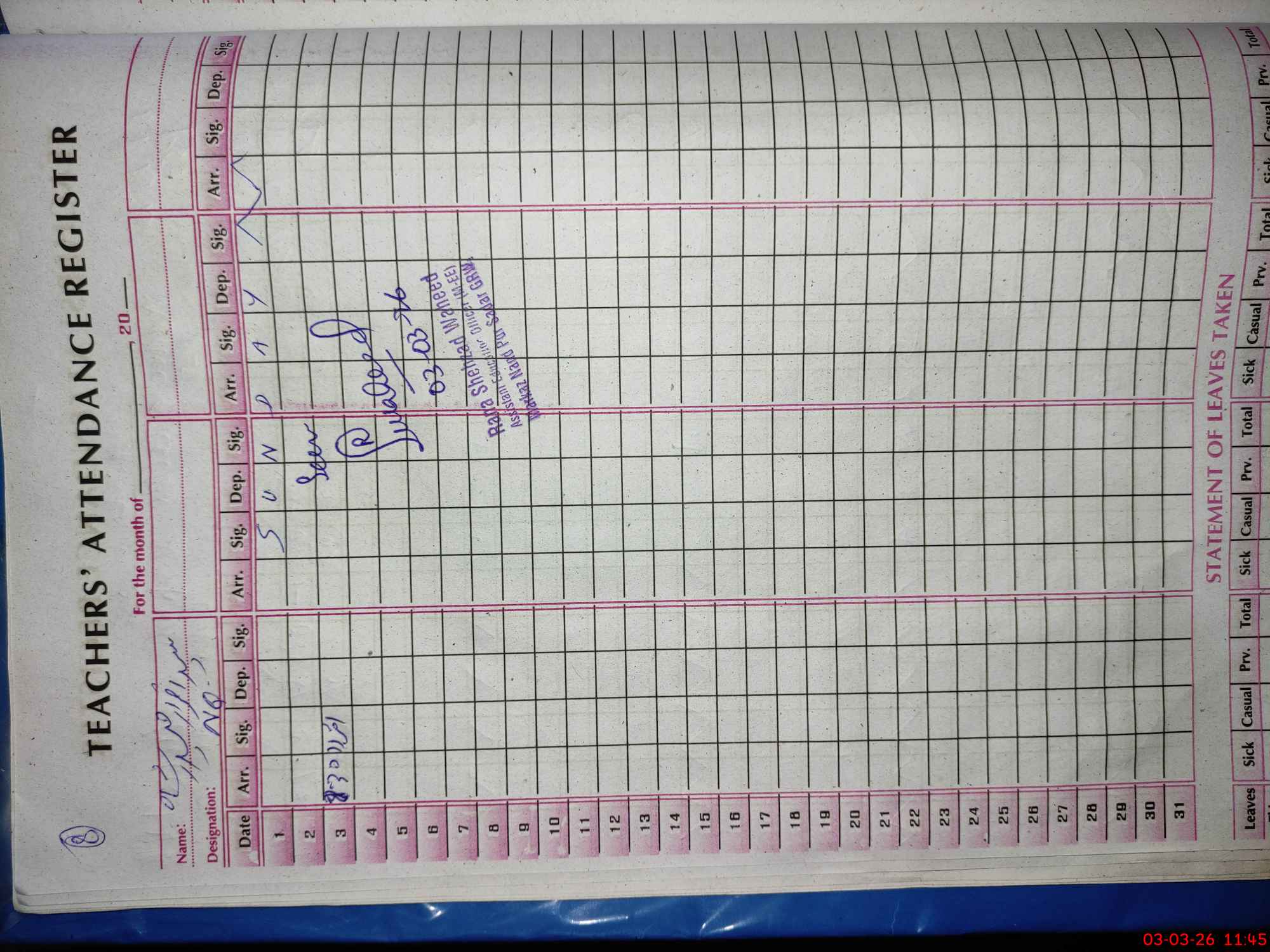 | Name: KH**** PE**** Designation: (School Headmaster's/Headmistress's) SST(Arts) Phone/Cell Number: 03**** |