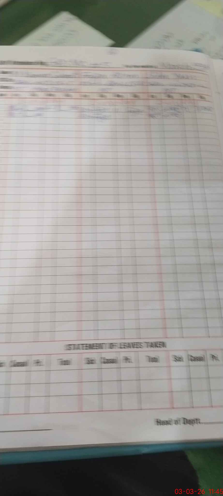 | Leave | Duty | Absent | Maternity | Medical | Ex- Pak |