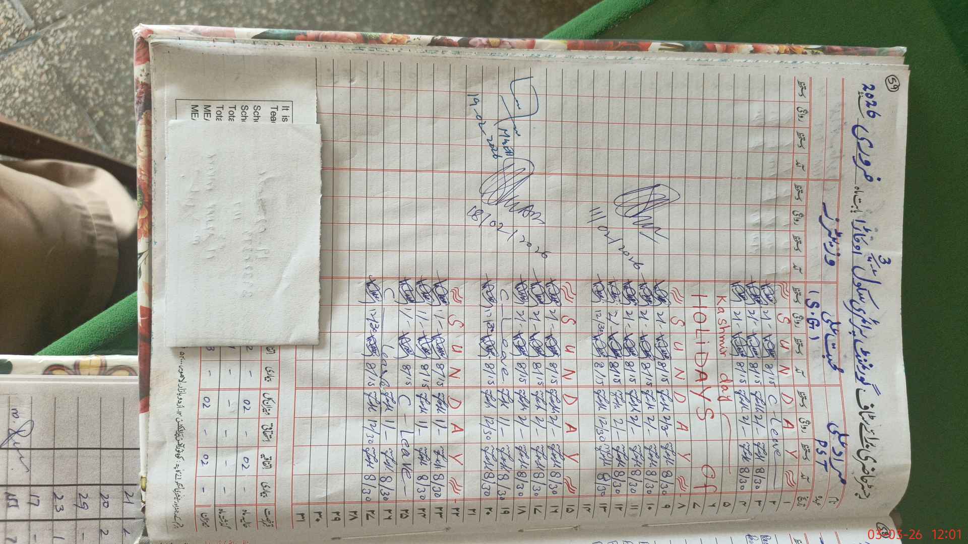 | Leave | Duty | Absent | Maternity | Medical | Ex- Pak |