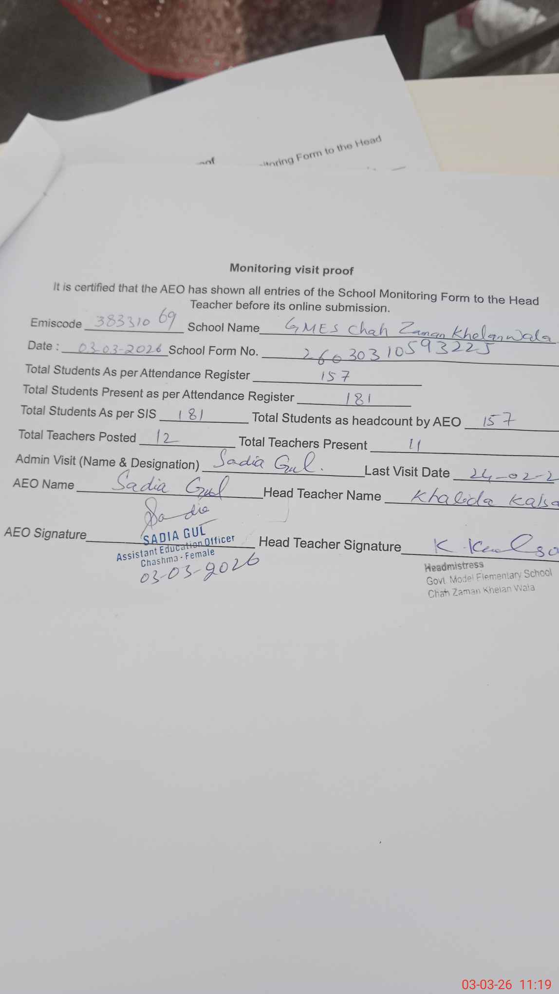| EMIS Code: 38331069 | Name of School: GMES CHAH ZAMAN KHELAN WALA | |||