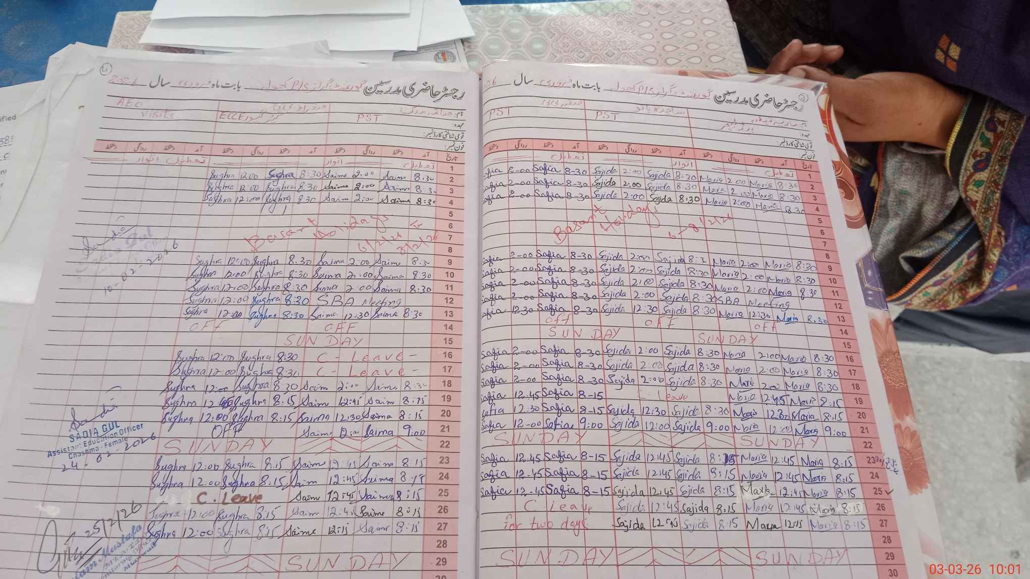 | Leave | Duty | Absent | Maternity | Medical | Ex- Pak |