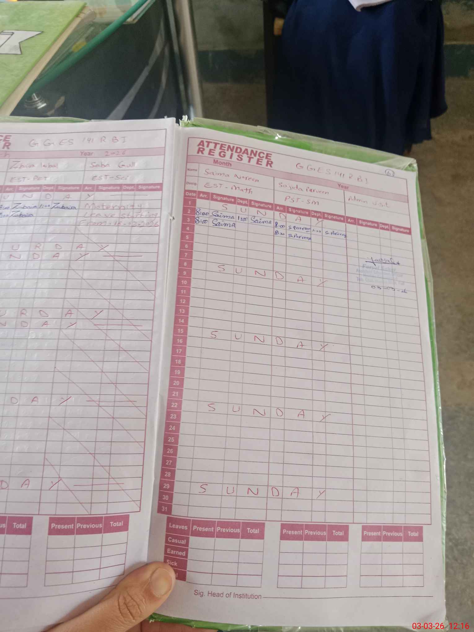 | 33**** | Sa**** Gu**** | EST Science | Regular | 0 | 0 | 0 | 0 | 0 | 0 | 0 | 0 | 0 | Maternity |