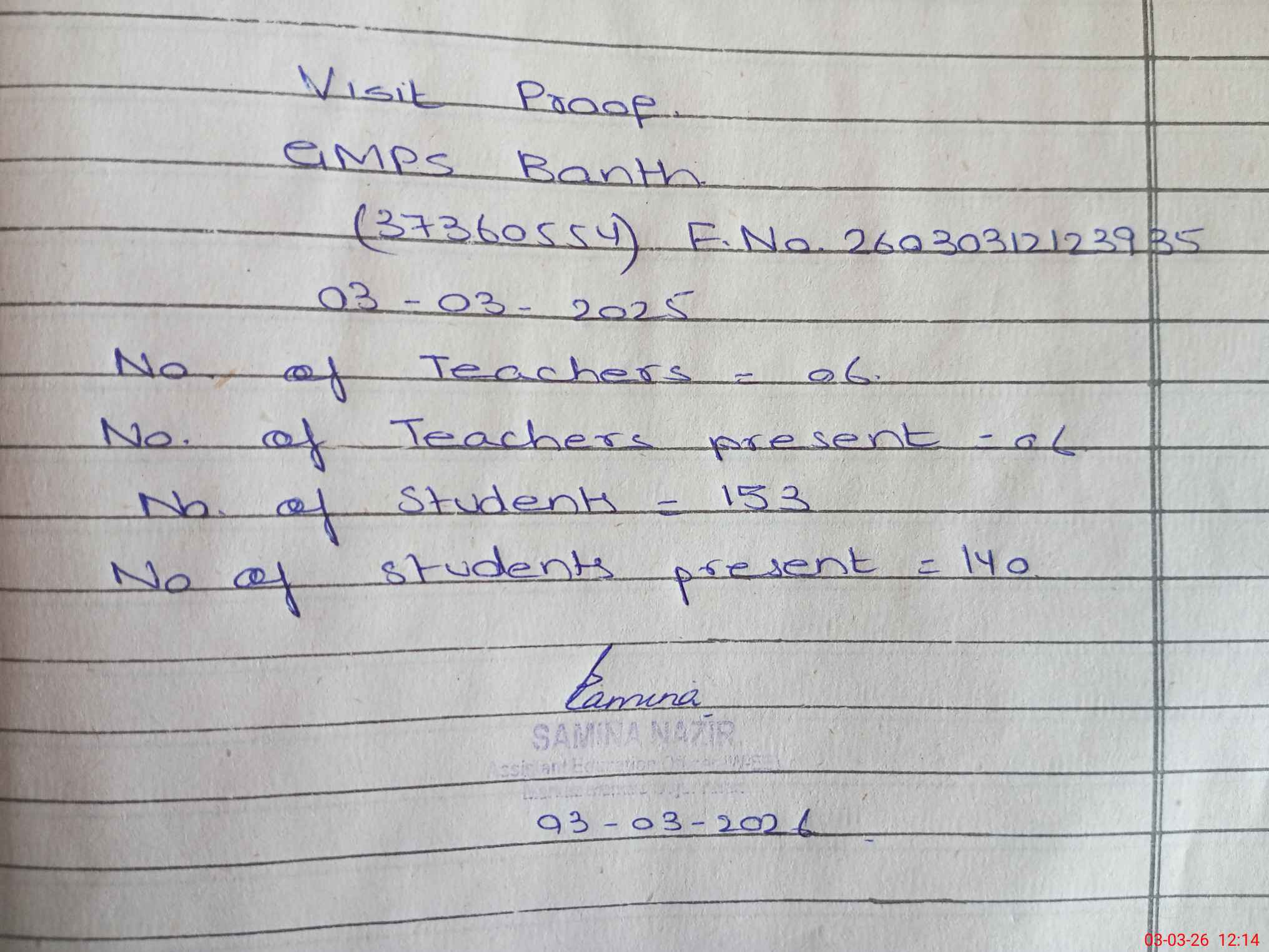 | Attendance Register | Head Teacher | MEA with School | Visit Proof |