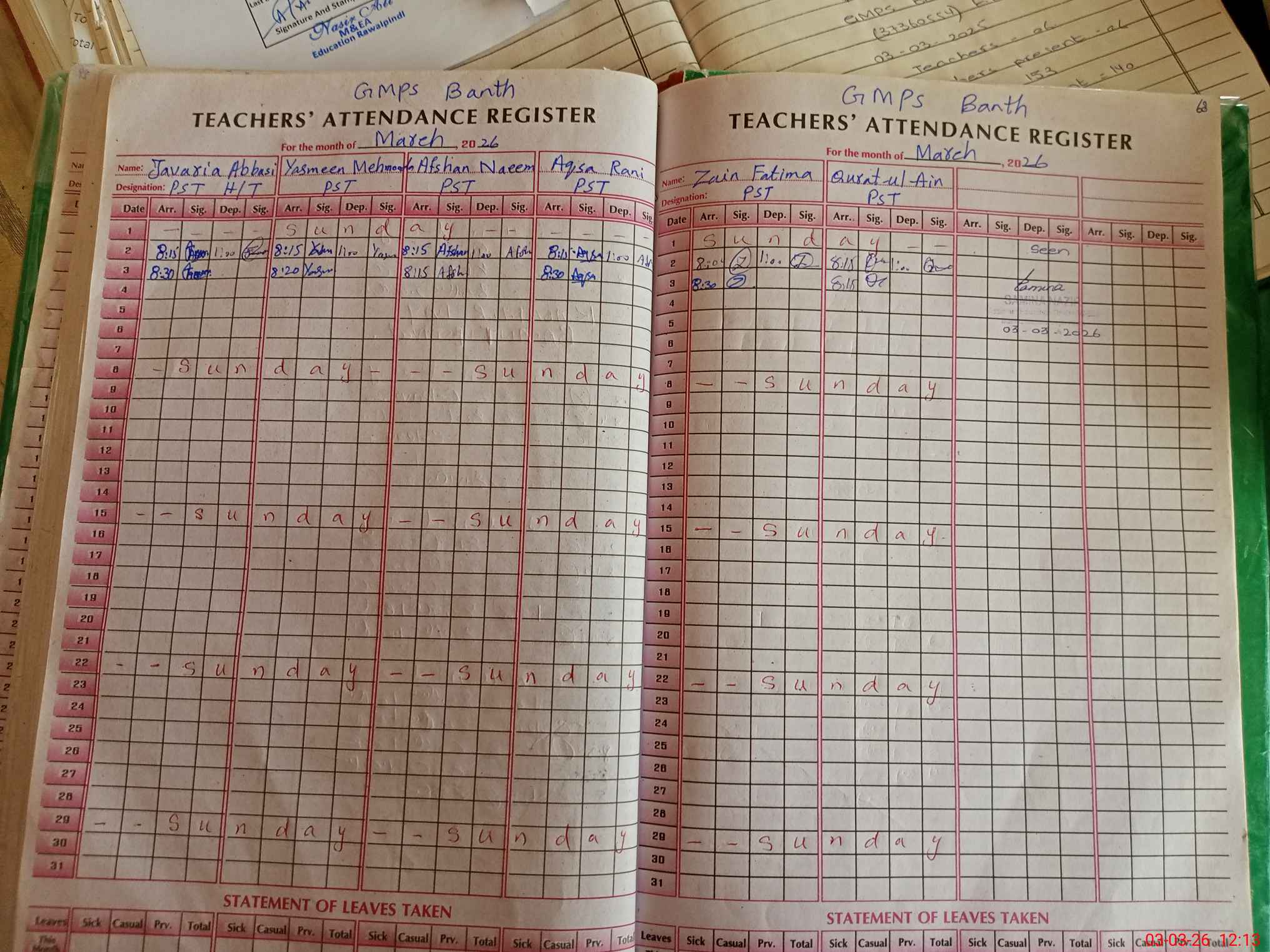 | Leave | Duty | Absent | Maternity | Medical | Ex- Pak |