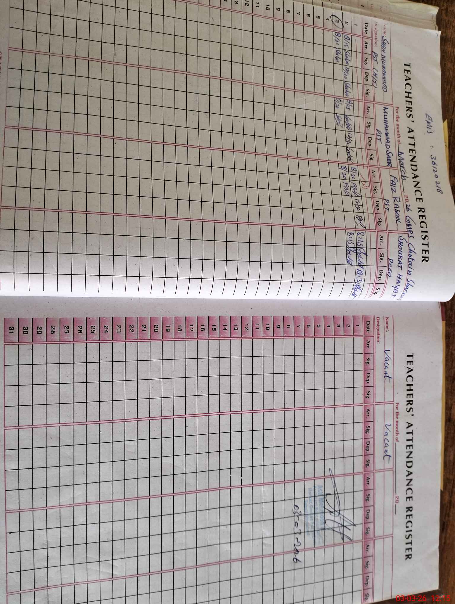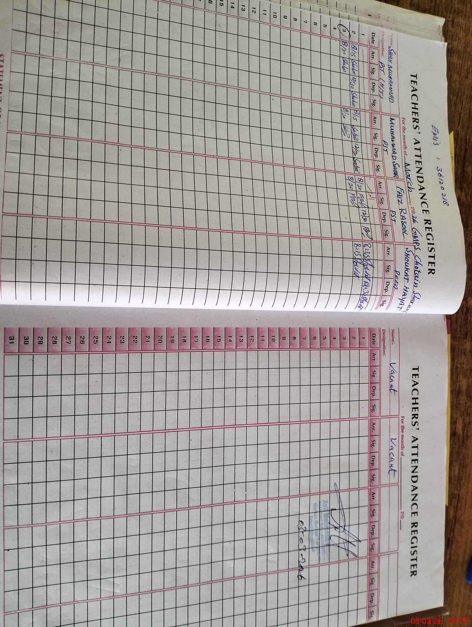 | Name: Sh**** Mu**** Designation: (School Headmaster's/Headmistress's) PST/PTC/JV Phone/Cell Number: 03**** |