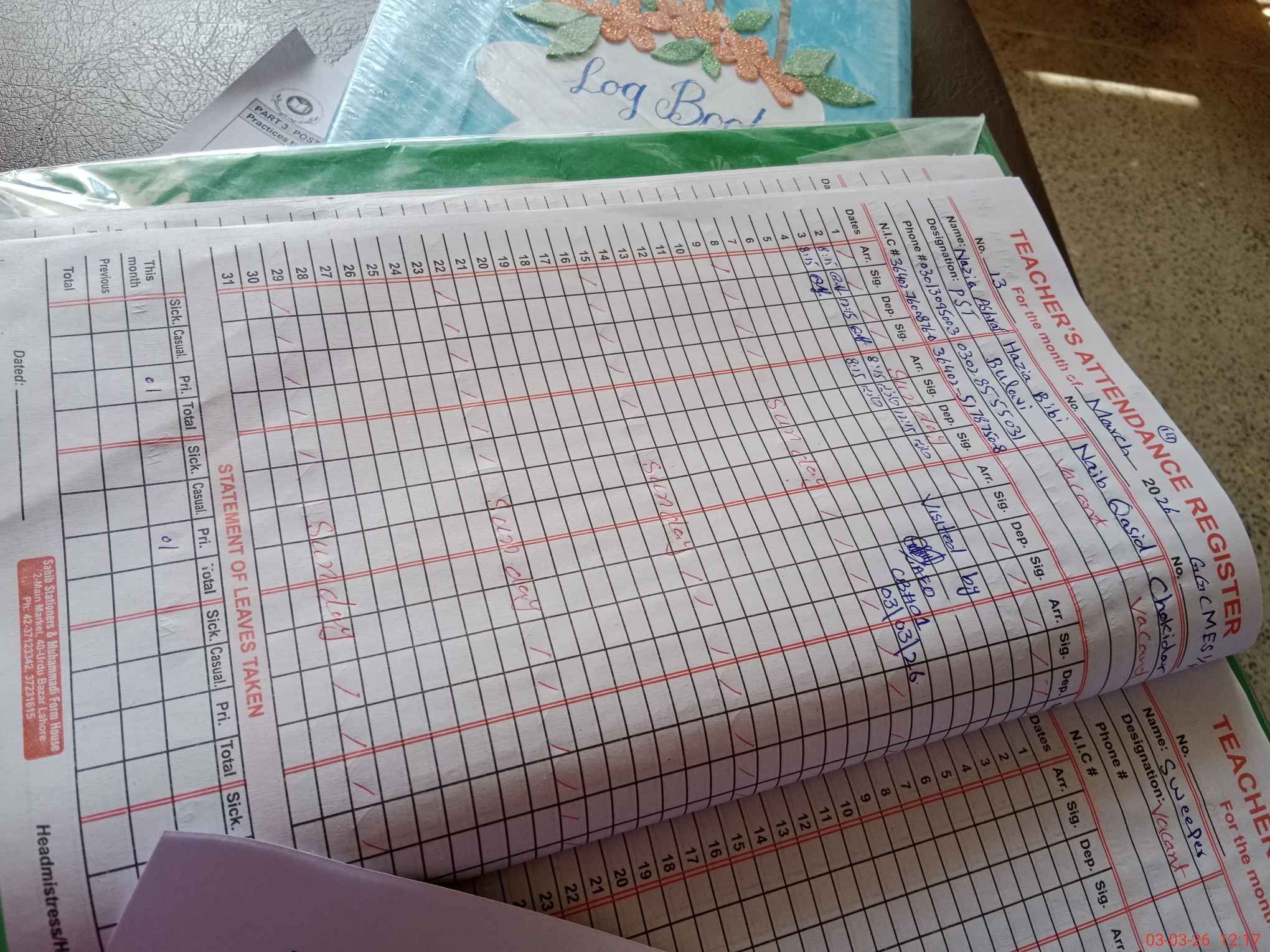| Name: AL**** SH**** Designation: (School Headmaster's/Headmistress's) SST Phone/Cell Number: 03**** |