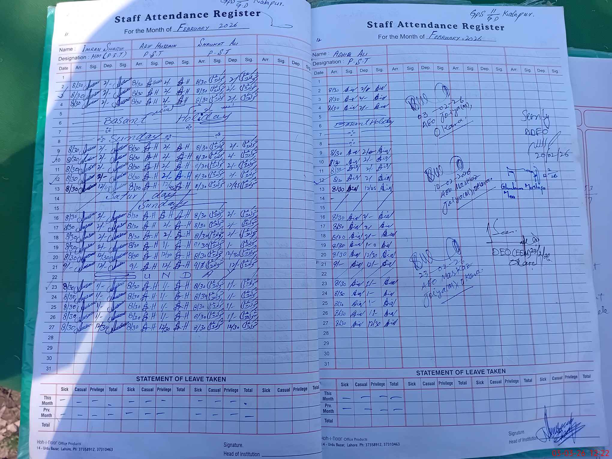 | Name: Im**** Sh**** Designation: (School Headmaster's/Headmistress's) PTC/JV Phone/Cell Number: 03**** |