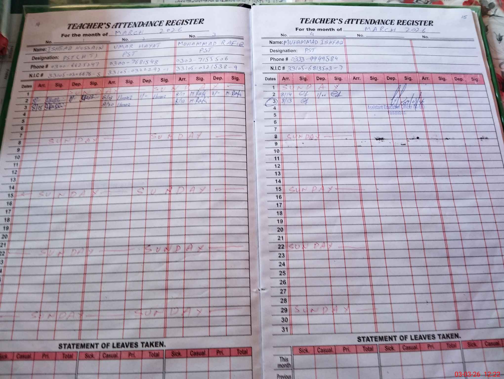 | Name: IS**** HU**** Designation: (School Headmaster's/Headmistress's) PTC Phone/Cell Number: 03**** |