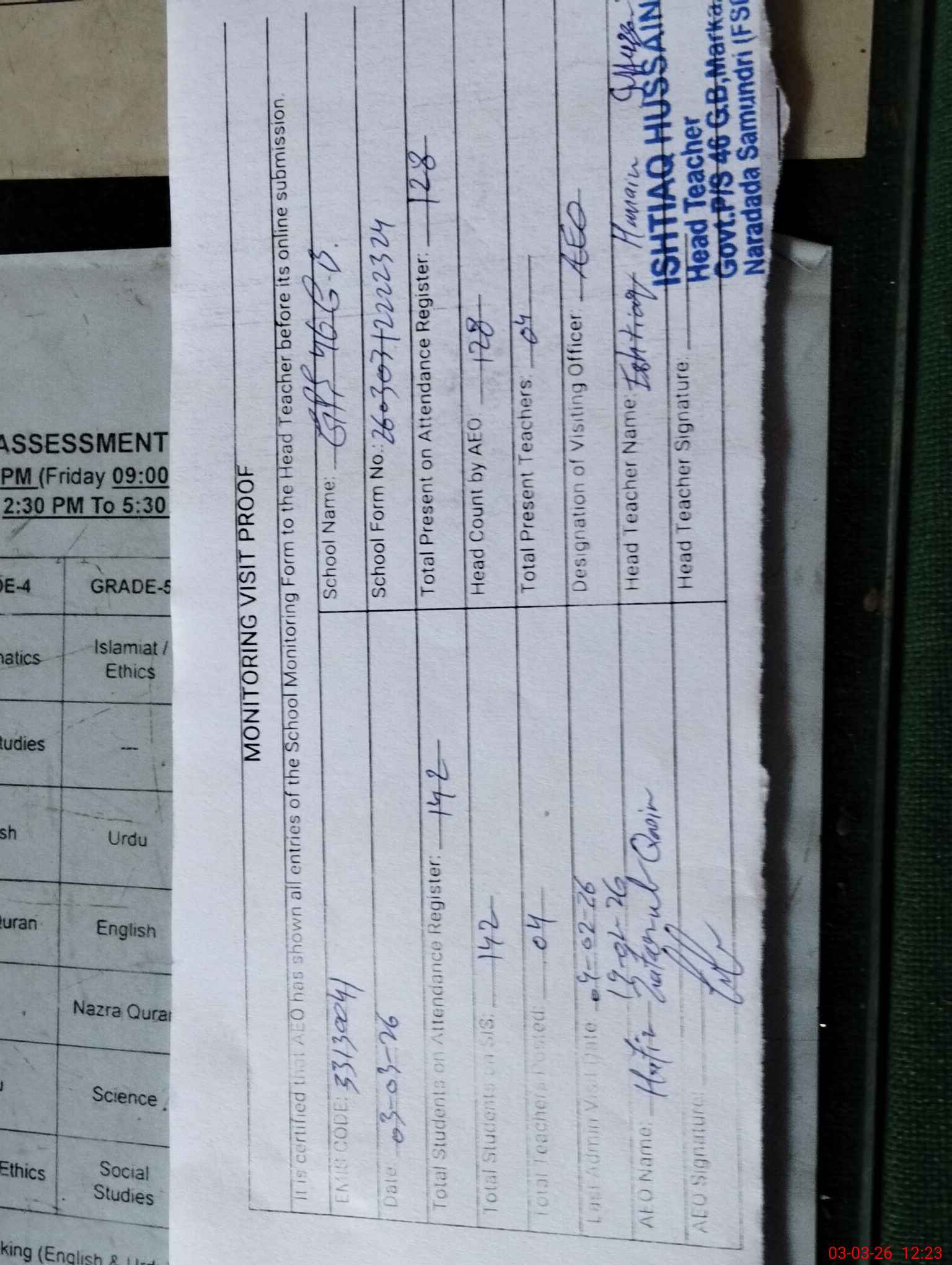 | EMIS Code: 33130041 | Name of School: GPS CHAK 46 GB SAMUNDRI | |||