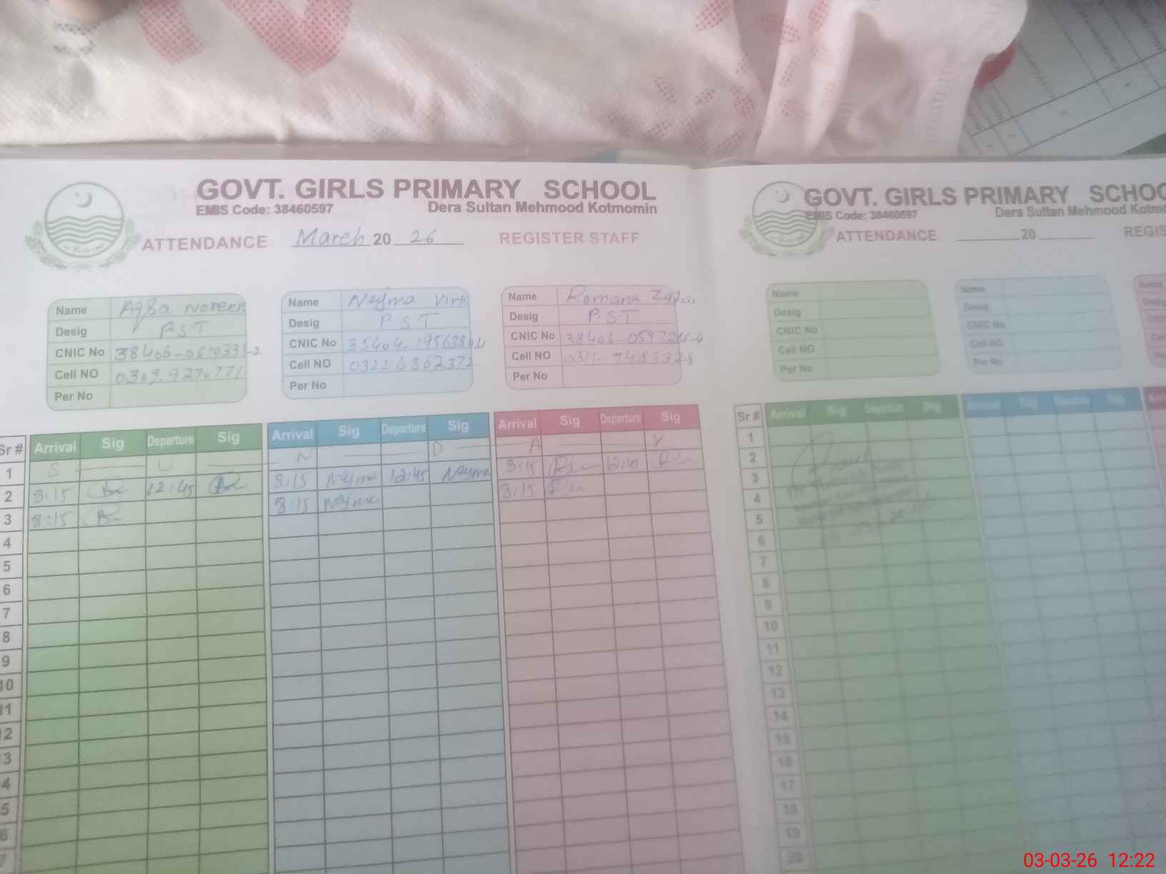 | Name: Aq**** No**** Designation: (School Headmaster's/Headmistress's) PST Phone/Cell Number: 03**** |