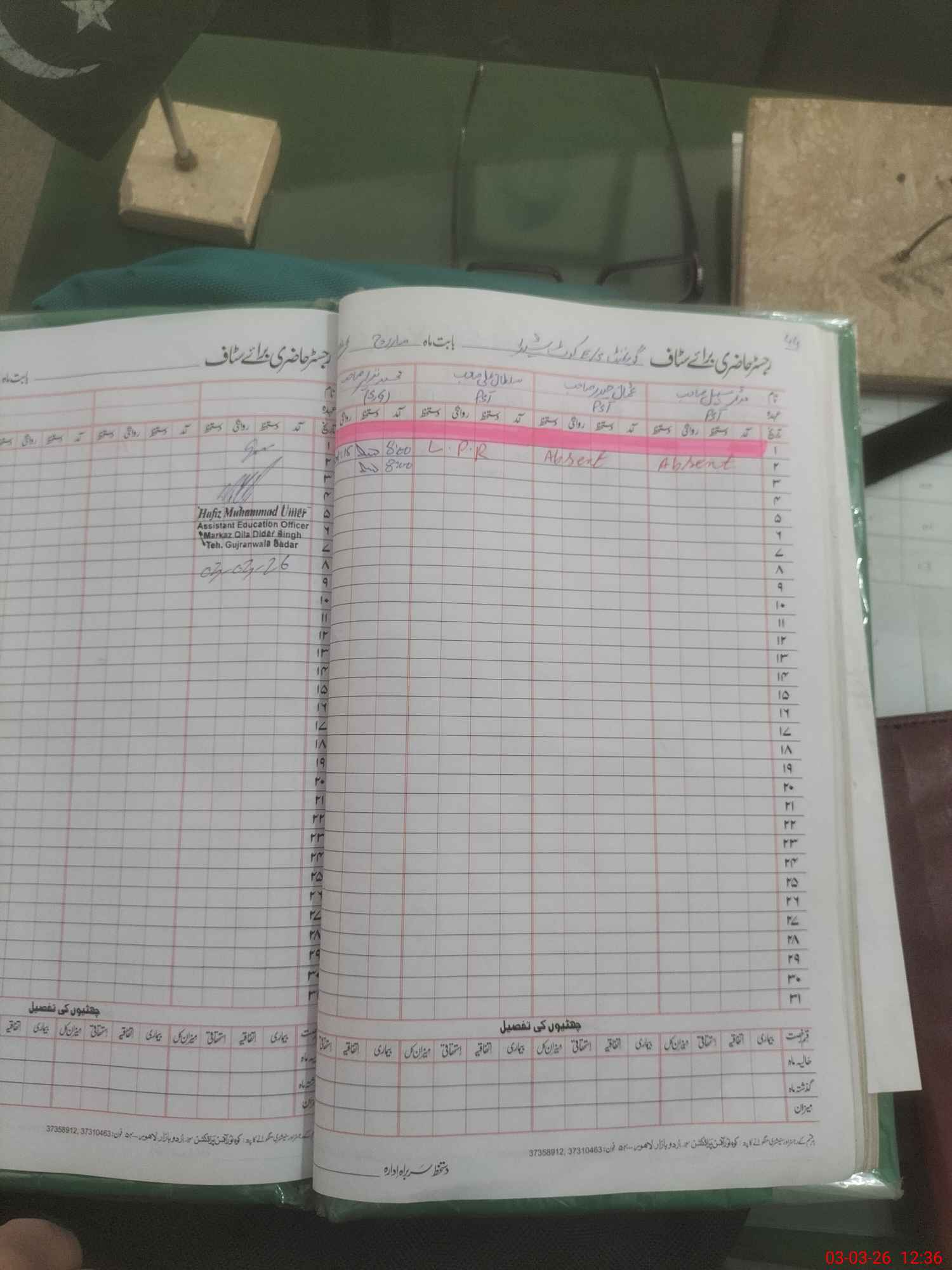 | Name: AR**** AL**** Designation: (School Headmaster's/Headmistress's) SSE Phone/Cell Number: 03**** |