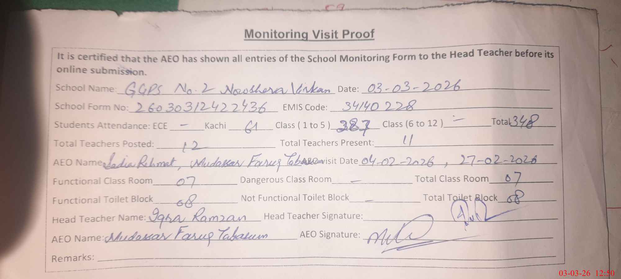 | EMIS Code: 34140228 | Name of School: GGPS NOWSHERA VIRKAN NO.2 | |||