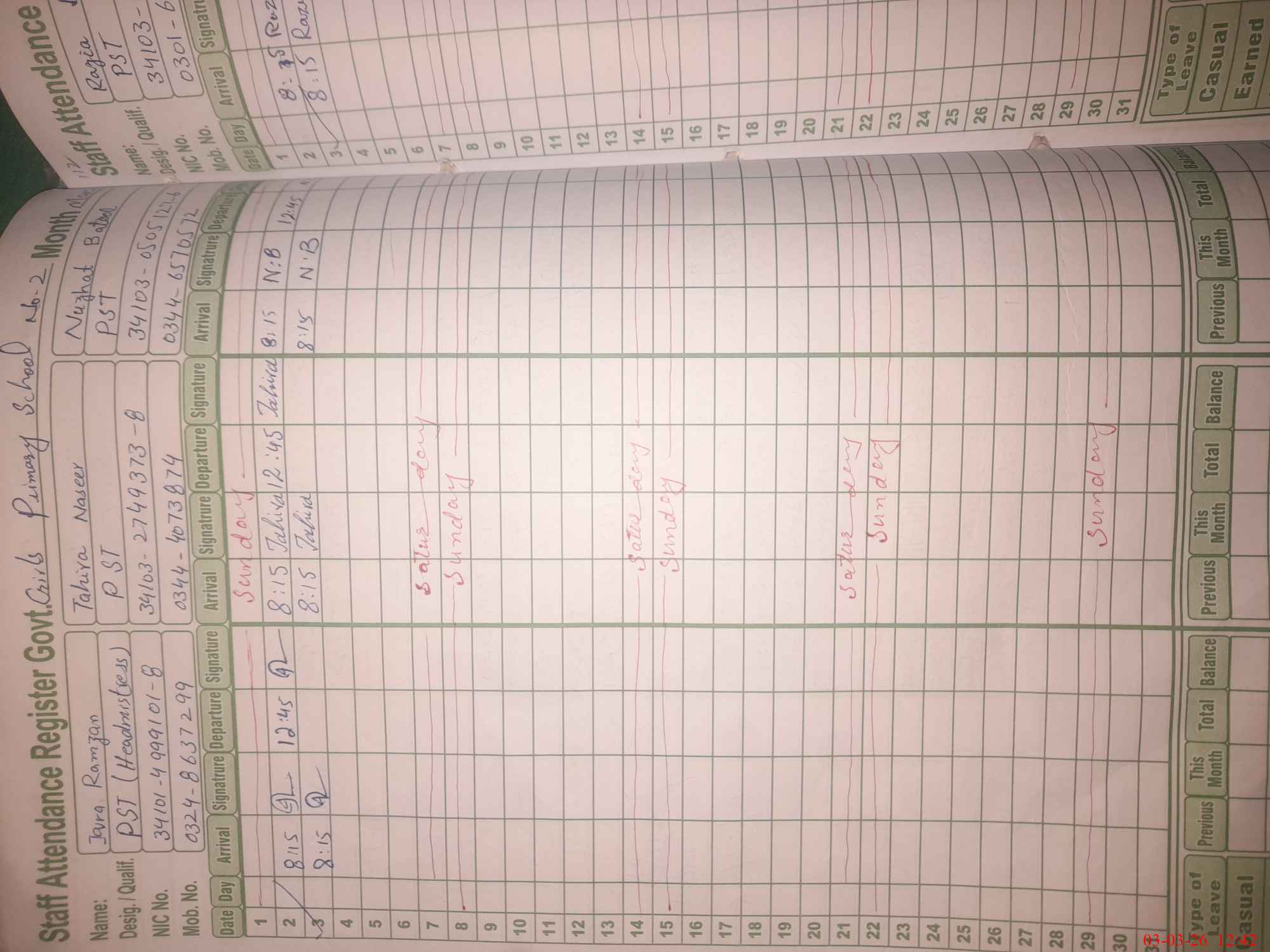 | Name: Iq**** Ra**** Designation: (School Headmaster's/Headmistress's) PST Phone/Cell Number: 03**** |