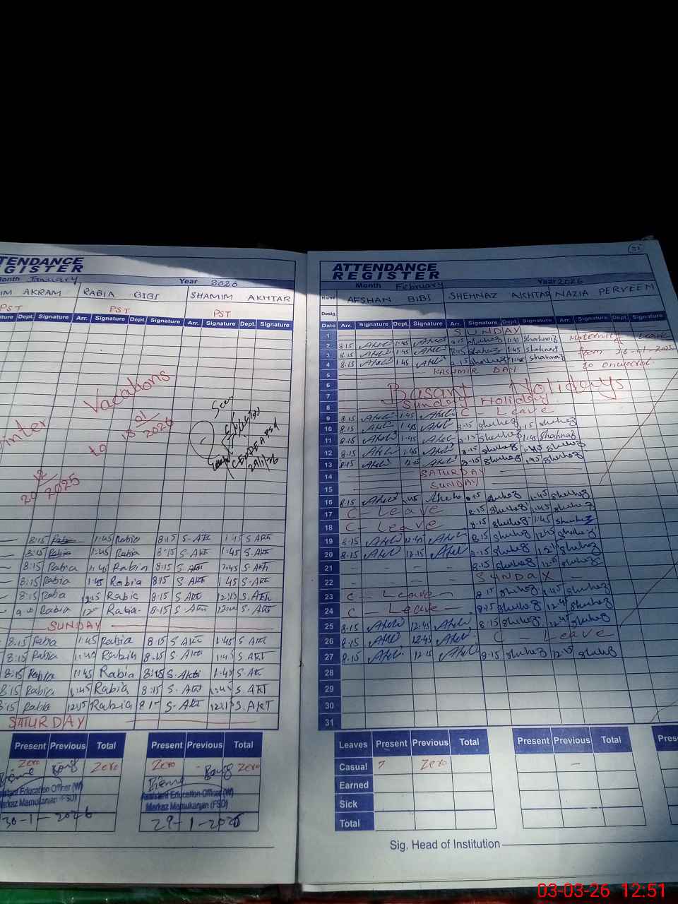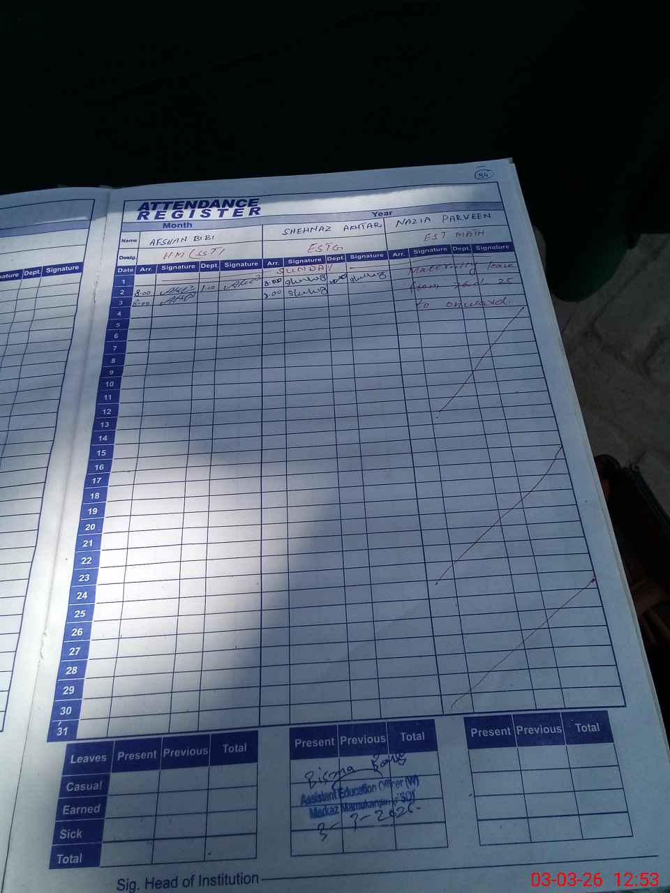 | 33**** | Sh**** Ak**** | PST Arts | Regular | 0 | 0 | 0 | 0 | 0 | 0 | 0 | 0 | 0 | Casual |