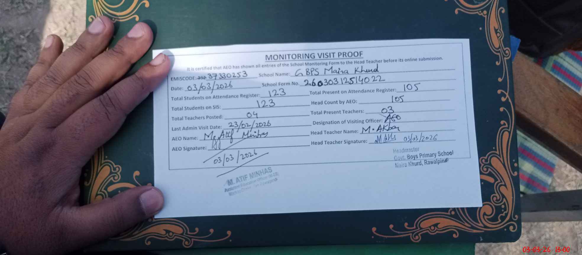 | EMIS Code: 37330253 | Name of School: GPS MAIRA KHURD | |||