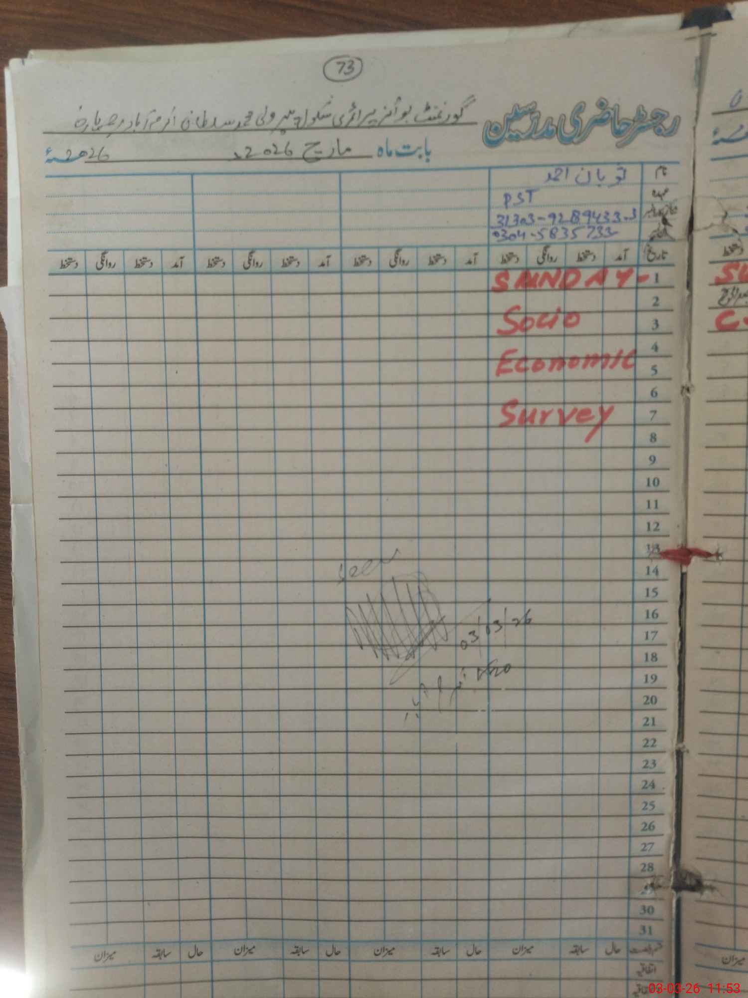 | Name: AZ**** HU**** Designation: (School Headmaster's/Headmistress's) PST Phone/Cell Number: 03**** |
