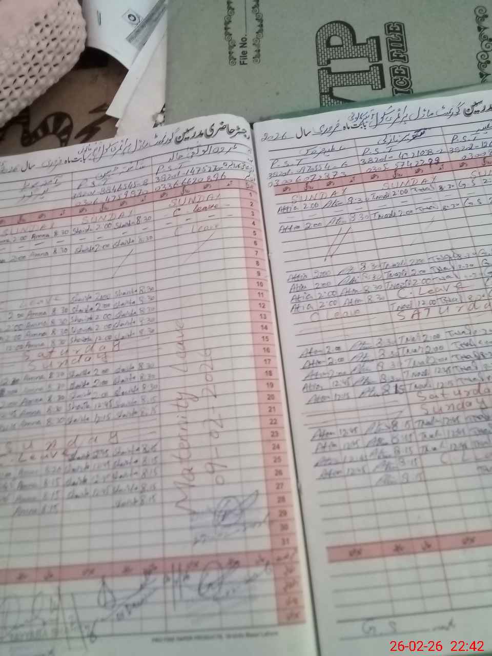 | Leave | Duty | Absent | Maternity | Medical | Ex- Pak |