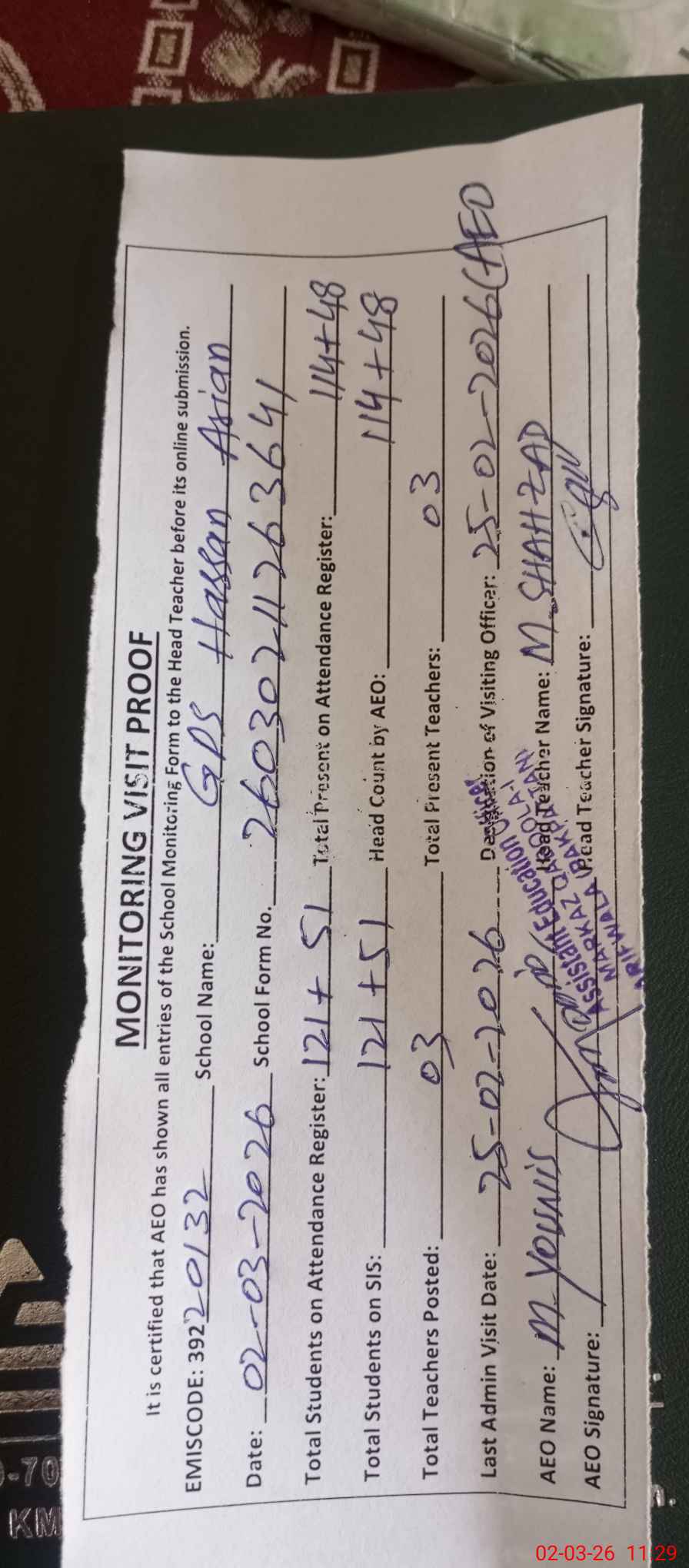 | EMIS Code: 39220132 | Name of School: GPS CHAK HASSAN ARRAIN | |||