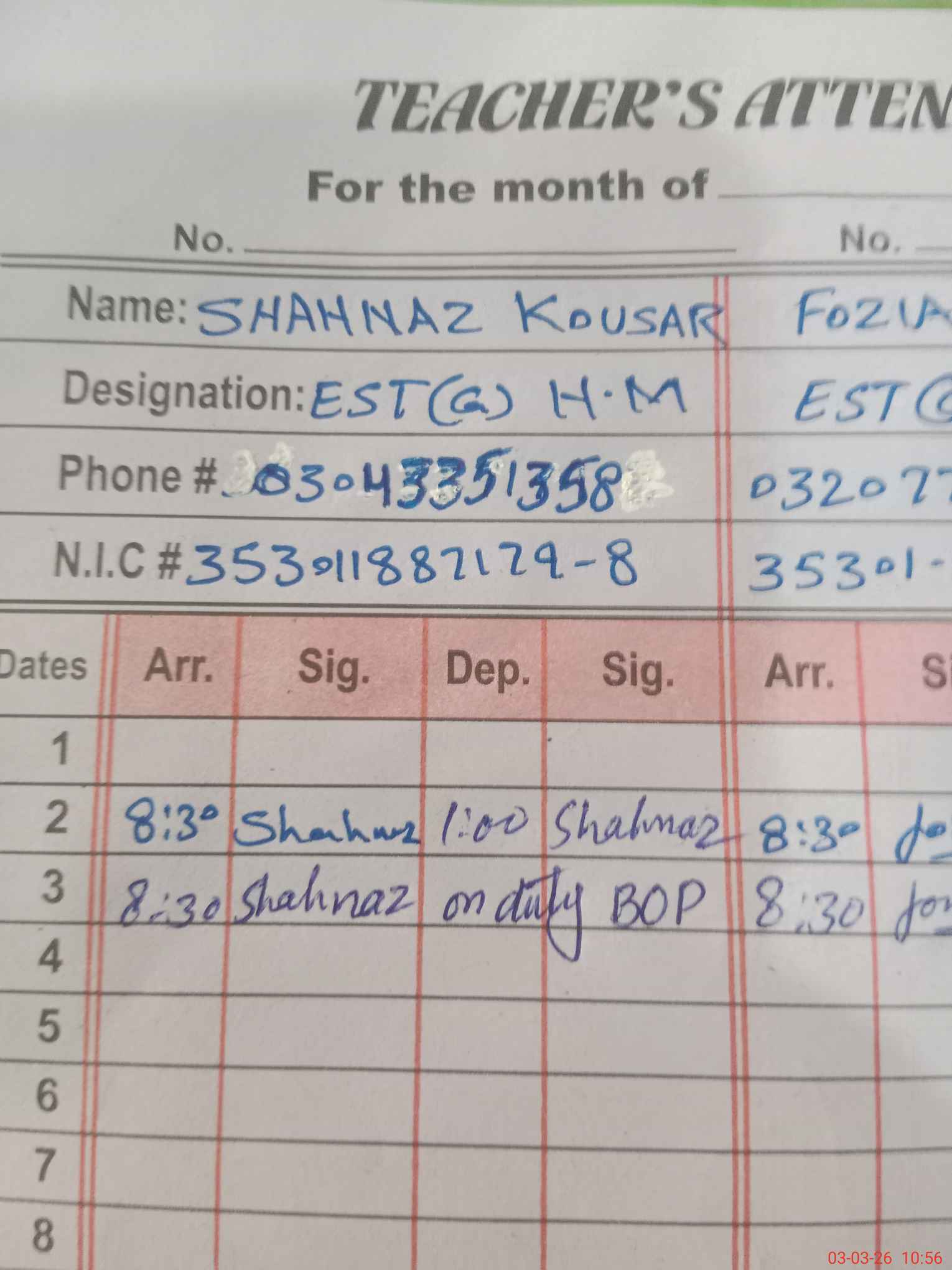 | Name: ME**** FA**** ZA**** Designation: (School Headmaster's/Headmistress's) S.S.T.(SC) Phone/Cell Number: 03**** |