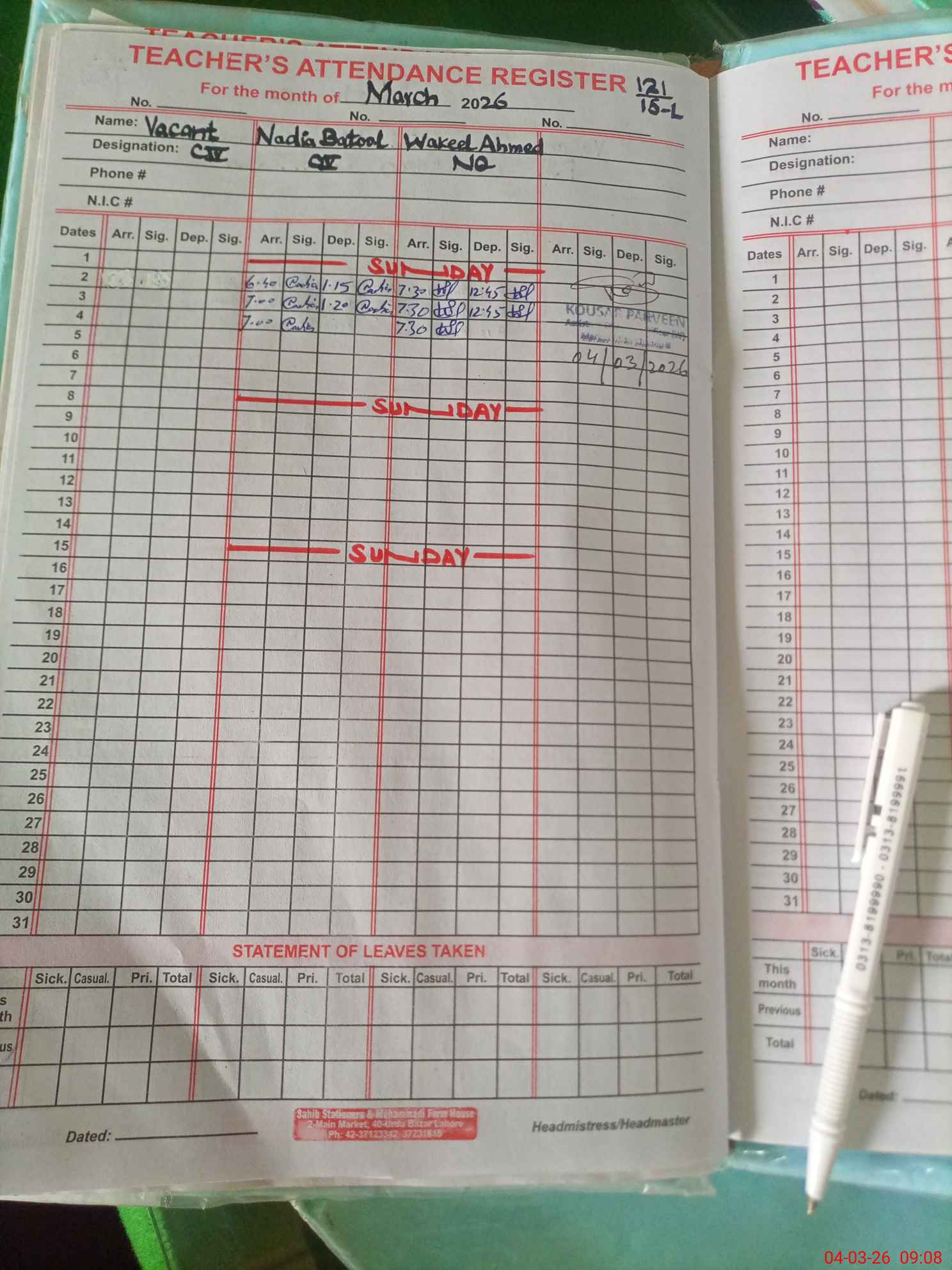 | Name: NA**** BA**** Designation: (School Headmaster's/Headmistress's) S.S.T.(general) Phone/Cell Number: 03**** |