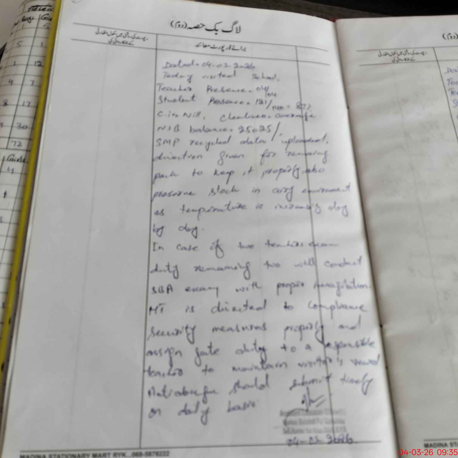 | Attendance Register | Head Teacher | MEA with School | Visit Proof |
